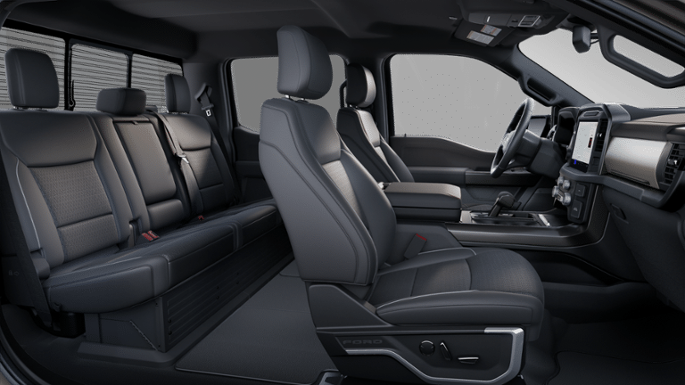 Equipped with Equipment Group 500A Standard, Lariat Black Appearance Package (ActiveX Trimmed Bucket Seats (B), Black Exterior Badging, Black Grille, Black Taillamp Bezels, Body-Color Front & Rear Bumpers, Body-Color Skull Caps & Door Handles, Dark Interior Appliques, Gray Box Side Decal, and Matte Black Tailgate F-150 Decal), Mobile Office Package (Console Worksurface, Partitioned Lockable Rear Storage, and Wireless Charging), Wheels: 18 Gloss Black, 3.31 Axle Ratio, 4-Wheel Disc Brakes, 8 Speakers, ABS brakes, ActiveX Trimmed Bucket Seats, Adjustable pedals, Air Conditioning, Alloy wheels, AM/FM radio: SiriusXM with 360L, Auto High-beam Headlights, Auto-dimming door mirrors, Auto-dimming Rear-View mirror, Automatic temperature control, Brake assist, Bumpers: chrome, Compass, Delay-off headlights, Driver door bin, Driver vanity mirror, Dual front impact airbags, Dual front side impact airbags, Electronic Stability Control, Emergency communication system: SYNC 4 911 Assist, Front anti-roll bar, Front Bucket Seats, Front Center Armrest, Front dual zone A/C, Front fog lights, Front reading lights, Front wheel independent suspension, Fully automatic headlights, Garage door transmitter, Heated door mirrors, Heated front seats, Heated steering wheel, Illuminated entry, Internet access capable: FordPass Connect 5G, Low tire pressure warning, Memory seat, Navigation system: Connected Navigation, Occupant sensing airbag, Outside temperature display, Overhead airbag, Overhead console, Panic alarm, Passenger door bin, Passenger vanity mirror, Pedal memory, Power door mirrors, Power driver seat, Power passenger seat, Power steering, Power windows, Radio data system, Radio: B&O Sound System by Bang & Olufsen, Rain sensing wipers, Rear reading lights, Rear seat center armrest, Rear step bumper, Rear window defroster, Remote keyless entry, Security system, Speed control, Split folding rear seat, Steering wheel mounted audio controls, SYNC 4 w/Enhanced Voice Recognition, Tachometer, Telescoping steering wheel, Tilt steering wheel, Traction control, Trip computer, Turn signal indicator mirrors, Variably intermittent wipers, Ventilated front seats, and Voltmeter. Price includes applicable rebates and excludes tax, title, license and $399 dealer fee: $2000 - Retail Customer Cash. Exp. 03/31/2026 $500 - Retail Bonus Cash. Exp. 03/31/2026