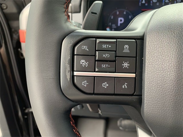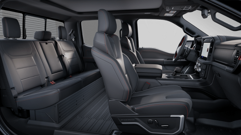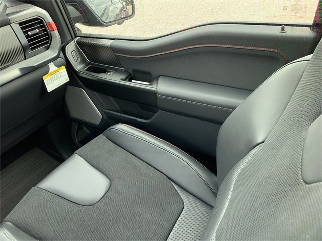 Equipped with Equipment Group 802A Raptor 37 (Carbon Fiber Interior Appliques, Dual Valve Shocks, Modular Front Bumper, and Wheels: Raptor 37 Unique 17 Cast Aluminum), Electronic Locking w/4.10 Axle Ratio, Twin Panel Moonroof, 14 Speakers, 17 Cast Aluminum Wheels, 4-Wheel Disc Brakes, ABS brakes, Adjustable pedals, Air Conditioning, Alloy wheels, AM/FM radio: SiriusXM with 360L, Auto High-beam Headlights, Auto tilt-away steering wheel, Auto-dimming door mirrors, Auto-dimming Rear-View mirror, Automatic temperature control, Brake assist, Bumpers: body-color, Compass, Delay-off headlights, Driver door bin, Driver vanity mirror, Dual front impact airbags, Dual front side impact airbags, Electronic Stability Control, Emergency communication system: SYNC 4 911 Assist, Front anti-roll bar, Front Bucket Seats, Front Center Armrest, Front dual zone A/C, Front fog lights, Front reading lights, Front wheel independent suspension, Fully automatic headlights, Garage door transmitter, Heads-Up Display, Heated door mirrors, Heated front seats, Heated rear seats, Heated steering wheel, Illuminated entry, Lane Departure Warning System, Leather steering wheel, Low tire pressure warning, Memory seat, Navigation system: Connected Navigation, Occupant sensing airbag, Outside temperature display, Overhead airbag, Overhead console, Panic alarm, Passenger door bin, Passenger vanity mirror, Pedal memory, Power door mirrors, Power driver seat, Power passenger seat, Power steering, Power windows, Radio data system, Radio: B&O Unleashed Sound System by Bang & Olufsen, Rain sensing wipers, Rear reading lights, Rear step bumper, Rear window defroster, Remote keyless entry, Security system, Speed control, Speed-sensing steering, Split folding rear seat, Steering wheel memory, Steering wheel mounted audio controls, SYNC 4 w/Enhanced Voice Recognition, Tachometer, Telescoping steering wheel, Tilt steering wheel, Traction control, Trip computer, Turn signal indicator mirrors, Variably intermittent wipers, and Ventilated front seats.