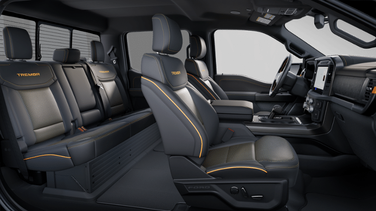 Equipped with Bed Utility Package (4 Pickup Box Tie-Down Plates, LED Box Lighting, and Power Tailgate), Equipment Group 402A High (2nd Row Heated Seats, Ambient Lighting, Auto-Dimming Rear-View Mirror, Front Axle w/Torsen Differential, Heads-Up Display, Heated Steering Wheel, LED Taillamps, Media Bin Door, Modular Front Bumper & Carbon Black Rear Bumper, Power Glass Heated Sideview Mirrors, Power-Adjustable Pedals w/Memory, Premium Wrapped Steering Wheel, Radio: B&O Unleashed Sound System by Bang & Olufsen, Rain-Sensing Wipers, Two-Speed Automatic AWD w/Mechanical Locking 4WD, Unique Tremor Leather-Trimmed Bucket Seats, and Universal Garage Door Opener), Mobile Office Package (Console Worksurface, Partitioned Lockable Rear Storage, and Wireless Charging), Tow/Haul Package (Integrated Trailer Brake Controller), GVWR: 7,100 lbs Payload Package, Electronic Locking w/3.73 Axle Ratio, Wheels: 18 Alloy w/Dark Matte Finish, 4-Wheel Disc Brakes, 8 Speakers, ABS brakes, Adjustable pedals, Air Conditioning, Alloy wheels, AM/FM radio: SiriusXM with 360L, Auto High-beam Headlights, Auto-dimming door mirrors, Auto-dimming Rear-View mirror, Automatic temperature control, Brake assist, Bumpers: body-color, Compass, Delay-off headlights, Driver door bin, Driver vanity mirror, Dual front impact airbags, Dual front side impact airbags, Electronic Stability Control, Emergency communication system: SYNC 4 911 Assist, Front anti-roll bar, Front Bucket Seats, Front Center Armrest, Front dual zone A/C, Front fog lights, Front reading lights, Front wheel independent suspension, Fully automatic headlights, Heated door mirrors, Heated front seats, Illuminated entry, Internet access capable: FordPass Connect 5G, Low tire pressure warning, Navigation system: Connected Navigation, Occupant sensing airbag, Outside temperature display, Overhead airbag, Overhead console, Panic alarm, Passenger door bin, Passenger vanity mirror, Power door mirrors, Power driver seat, Power passenger seat, Power steering, Power windows, Radio data system, Radio: B&O Sound System by Bang & Olufsen, Rear reading lights, Rear step bumper, Rear window defroster, Remote keyless entry, Security system, Speed control, Split folding rear seat, Steering wheel mounted audio controls, SYNC 4 w/Enhanced Voice Recognition, Tachometer, Telescoping steering wheel, Tilt steering wheel, Traction control, Trip computer, Turn signal indicator mirrors, Unique Sport Cloth 40/Console/40 Power Front Seat, Variably intermittent wipers, and Voltmeter. Price includes applicable rebates and excludes tax, title, license and $399 dealer fee: $1000 - Retail Bonus Cash. Exp. 03/31/2026 $1000 - Truck Month Retail Bonus Cash. Exp. 03/31/2026 $2000 - Retail Customer Cash. Exp. 03/31/2026