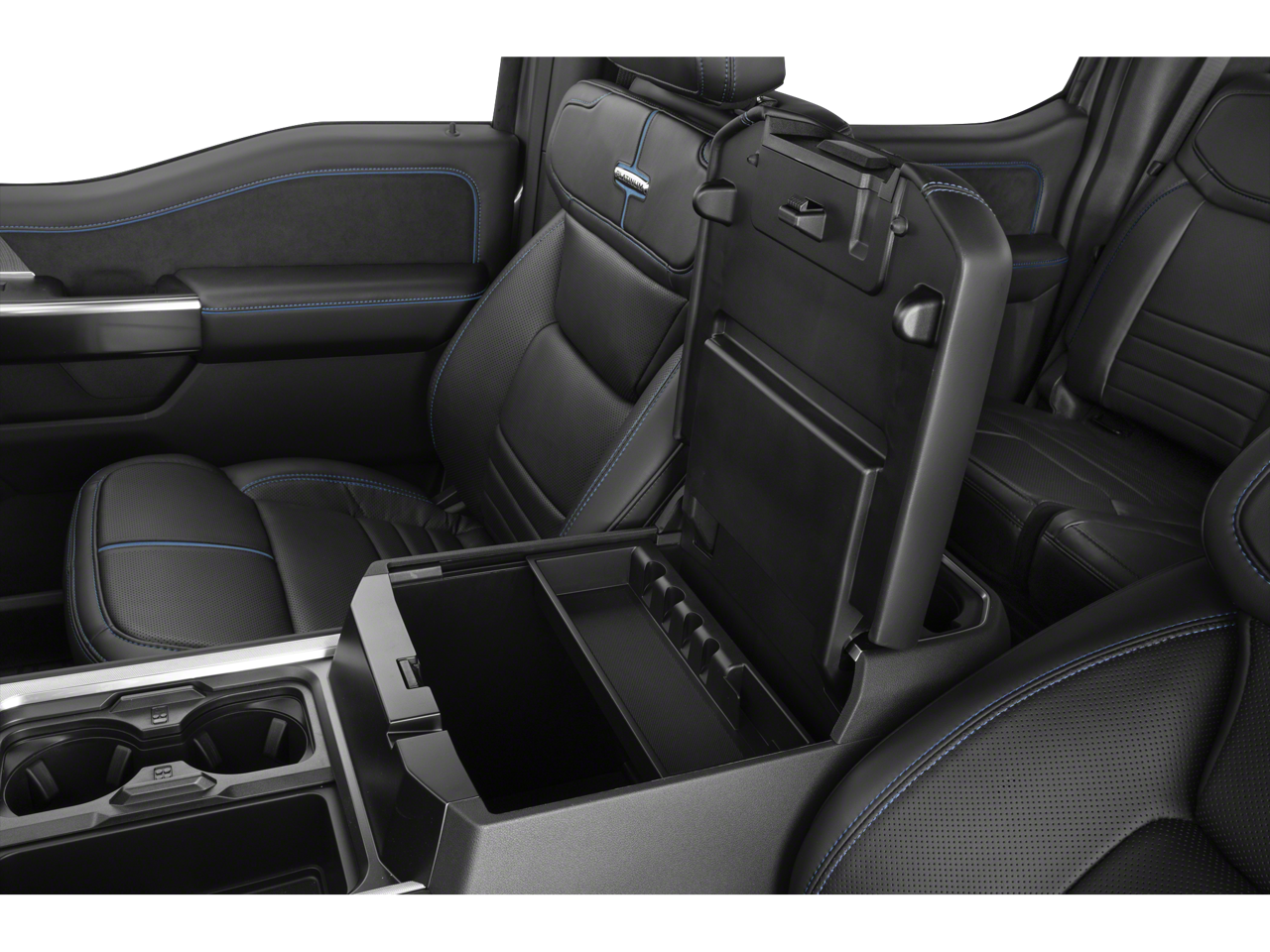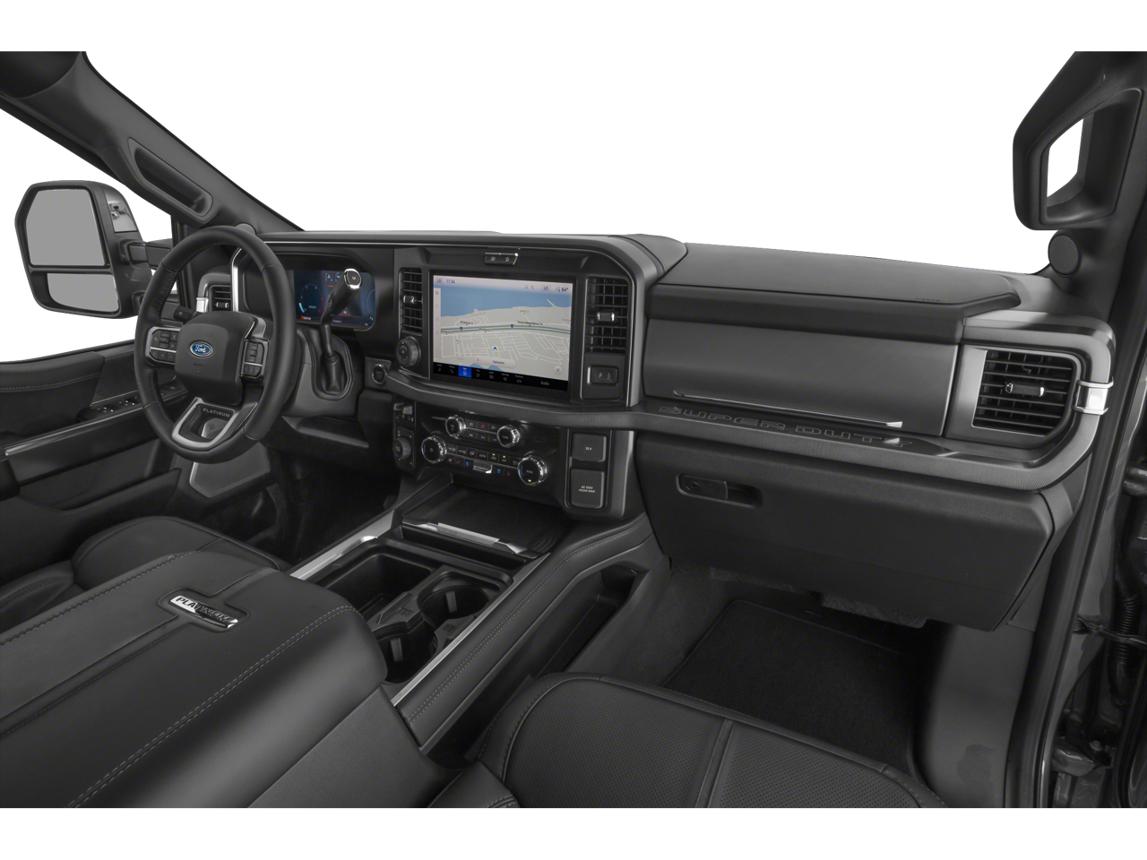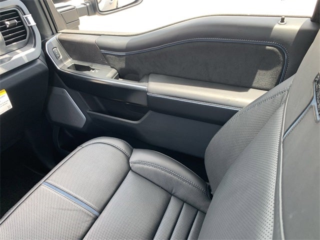 Equipped with FX4 Off-Road Package (Hill Descent Control, Off-Road Specifically Tuned Shock Absorbers, and Unique FX4 Off-Road Box Decal), Order Code 713A (Flow-Through Console, Radio: B&O Unleashed Sound System by Bang & Olufsen, and Unique Platinum Leather 40/Console/40 Seats), Twin Panel Power Moonroof, 14 Speakers, 34 Gallon Fuel Tank, 4-Wheel Disc Brakes, ABS brakes, Adjustable pedals, Air Conditioning, Alloy wheels, AM/FM radio: SiriusXM with 360L, Auto High-beam Headlights, Auto tilt-away steering wheel, Auto-dimming Rear-View mirror, Automatic temperature control, Brake assist, Bumpers: body-color, Compass, Delay-off headlights, Driver door bin, Driver vanity mirror, Dual front impact airbags, Dual front side impact airbags, Electronic Stability Control, Emergency communication system: SYNC 4 911 Assist, Front anti-roll bar, Front Bucket Seats, Front Center Armrest, Front dual zone A/C, Front fog lights, Front License Plate Bracket, Front reading lights, Fully automatic headlights, Garage door transmitter, Heads-Up Display, Heated door mirrors, Heated front seats, Heated rear seats, Heated steering wheel, Illuminated entry, Leather steering wheel, Low tire pressure warning, Memory seat, Navigation System, Outside temperature display, Overhead airbag, Overhead console, Panic alarm, Passenger door bin, Passenger vanity mirror, Pedal memory, Power door mirrors, Power driver seat, Power passenger seat, Power steering, Power windows, Power-Deployable Running Boards, Rain sensing wipers, Rear reading lights, Rear seat center armrest, Rear step bumper, Rear window defroster, Remote keyless entry, SecuriCode Wireless Keyless Entry Keypad, Security system, Speed control, Split folding rear seat, Steering wheel mounted A/C controls, Steering wheel mounted audio controls, Tachometer, Telescoping steering wheel, Tilt steering wheel, Traction control, Trip computer, Turn signal indicator mirrors, Variably intermittent wipers, and Ventilated front seats.