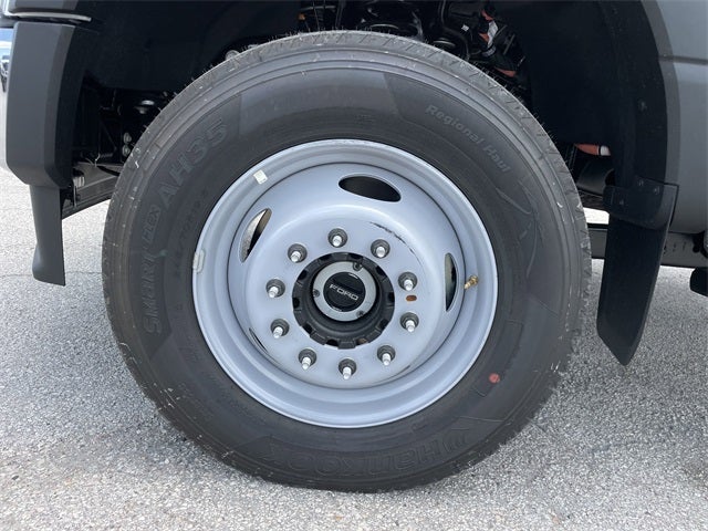 Equipped with Order Code 680A, XL Chrome Package (Bright Grille, Chrome Front Bumper, Halogen Fog Lamps, and Remote Start), GVWR: 22,000 lbs Payload Package, 6-Ton Hydraulic Jack, Dual rear wheels, HD Vinyl 40/20/40 Split Bench Seat, Limited Slip w/4.30 Axle Ratio, Platform Running Boards, Rear View Camera & Prep Kit, Trailer Brake Controller, 350 Amp Dual Alternators, 4 Speakers, 4-Wheel Disc Brakes, ABS brakes, Air Conditioning, AM/FM radio, AM/FM Stereo w/MP3 Player, Brake assist, Compass, Delay-off headlights, Dual front impact airbags, Dual front side impact airbags, Electronic Stability Control, Emergency communication system: SYNC 4 911 Assist, Front anti-roll bar, Front Center Armrest w/Storage, Front License Plate Bracket, Front reading lights, Fully automatic headlights, Heated door mirrors, Illuminated entry, Low tire pressure warning, Outside temperature display, Overhead airbag, Overhead console, Panic alarm, Passenger cancellable airbag, Passenger vanity mirror, Power door mirrors, Power steering, Power windows, Rear anti-roll bar, Remote keyless entry, Security system, Speed control, Steering wheel mounted audio controls, SYNC 4 Communication & Entertainment System, Tachometer, Telescoping steering wheel, Tilt steering wheel, Traction control, Trip computer, Turn signal indicator mirrors, Variably intermittent wipers, and Wheels: 19.5 x 6.75 Argent Painted Steel.