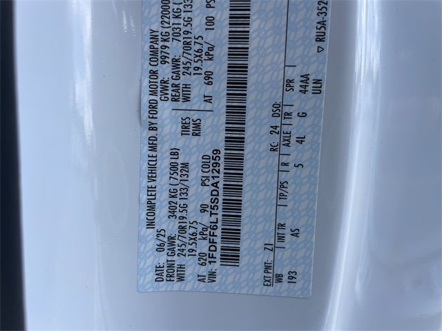 $4,493 off MSRP! 2025 Ford F-600SD XL Oxford White Factory MSRP: $75,535 6-Ton Hydraulic Jack, Bright Grille, Chrome Front Bumper, Dual rear wheels, Halogen Fog Lamps, HD Vinyl 40/20/40 Split Bench Seat, Limited Slip w/4.30 Axle Ratio, Order Code 680A, Platform Running Boards, Rear View Camera & Prep Kit, Remote Start, Trailer Brake Controller, XL Chrome Package.