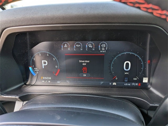 Equipped with Equipment Group 800A Standard, 10 Speakers, 4-Wheel Disc Brakes, 4.27 Axle Ratio, ABS brakes, Air Conditioning, Alloy wheels, AM/FM radio: SiriusXM, Auto High-beam Headlights, Auto-dimming Rear-View mirror, Automatic temperature control, Brake assist, Compass, Delay-off headlights, Driver door bin, Driver vanity mirror, Dual front impact airbags, Dual front side impact airbags, Electronic Stability Control, Emergency communication system: SYNC 4 911 Assist, Front anti-roll bar, Front Bucket Seats, Front Center Armrest, Front dual zone A/C, Front fog lights, Front reading lights, Front wheel independent suspension, Fully automatic headlights, Garage door transmitter, Heated door mirrors, Heated front seats, Heated steering wheel, Illuminated entry, Internet access capable: FordPass Connect 4G, Leather Shift Knob, Leather steering wheel, Leather-Trimmed Front Heated Bucket Seats, Low tire pressure warning, Memory seat, Navigation system: Connected Navigation, Occupant sensing airbag, Outside temperature display, Overhead airbag, Overhead console, Panic alarm, Passenger door bin, Passenger vanity mirror, Power door mirrors, Power driver seat, Power passenger seat, Power steering, Power windows, Radio: B&O Sound System by Bang & Olufsen, Rain sensing wipers, Rear reading lights, Rear seat center armrest, Rear step bumper, Rear window defroster, Remote keyless entry, Security system, SiriusXM Satellite Radio, Speed control, Speed-sensing steering, Steering wheel mounted audio controls, SYNC 4A, Telescoping steering wheel, Tilt steering wheel, Traction control, Trip computer, Turn signal indicator mirrors, Variably intermittent wipers, Voltmeter, and Wheels: 17 Gray-Painted Aluminum.