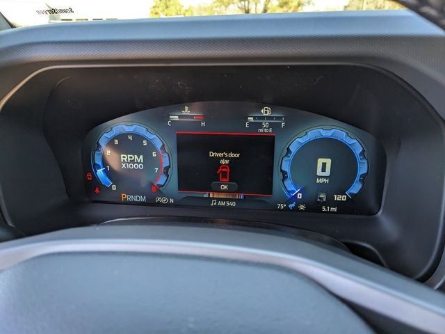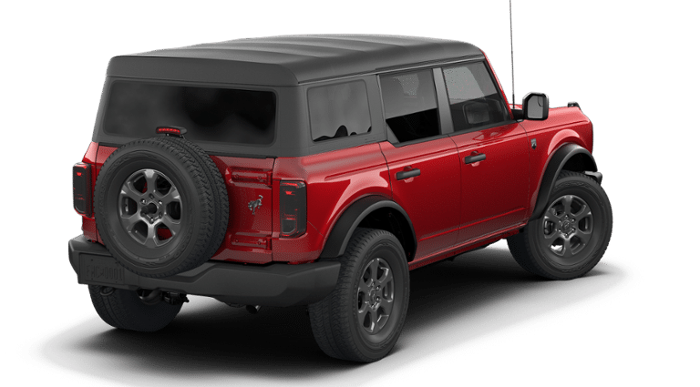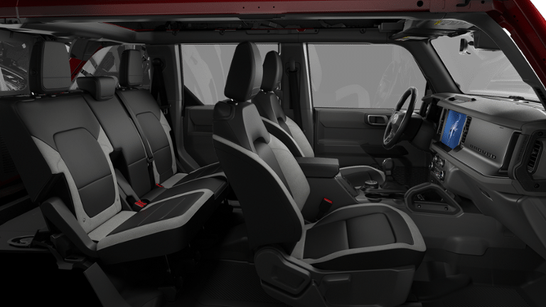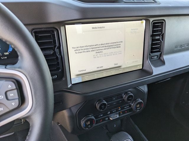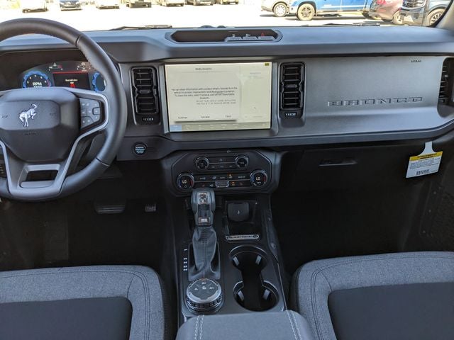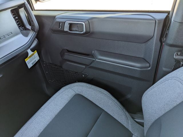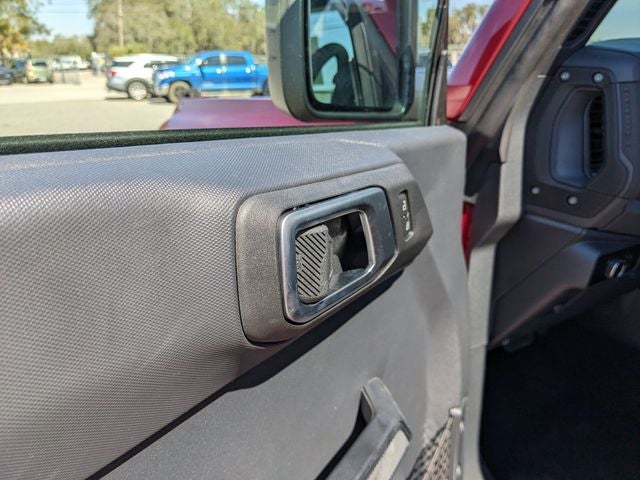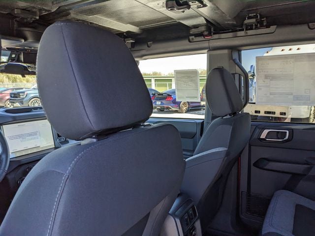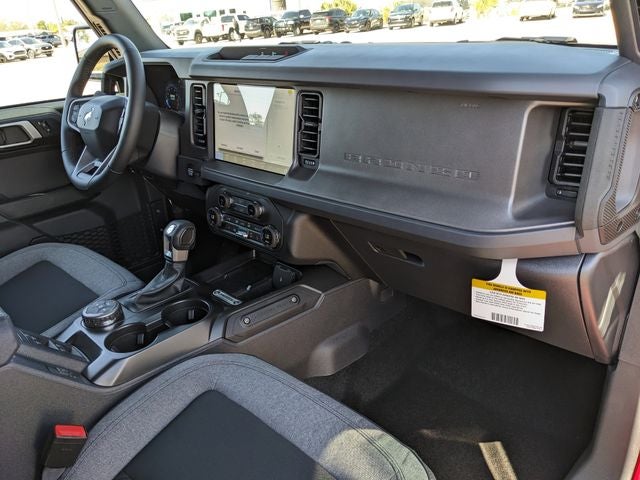 Equipped with Equipment Group 222A Mid Package (2-Door Intelligent Access with Lock/Unlock, AM/FM Stereo, Ambient Footwell Lighting, Cloth Bucket Seats, Connected Navigation, Driver and Front Passenger Illuminated Sliding Visor Vanity Mirrors, Dual Smart Charging USB Ports, Dual-Zone Electronic Automatic Temperature Control, Front Row Heated Seats, Pro Power Onboard - 400W, Rear Parking Sensors, SiriusXM with 360L, SYNC 4, and Wheels: 17 Carbonized Gray-Painted Aluminum), Ford Connectivity Package (1-Year Included), Carbonized Gray Molded-in-Color Hard Top, Rear-Window Defroster and Washer, 4-Wheel Disc Brakes, 4.46 Axle Ratio, 7 Speakers, ABS brakes, Air Conditioning, Alloy wheels, AM/FM radio: SiriusXM with 360L, Auto High-beam Headlights, Brake assist, Compass, Delay-off headlights, Driver door bin, Driver vanity mirror, Dual front impact airbags, Dual front side impact airbags, Electronic Stability Control, Emergency communication system: 911 Assist, Exterior Parking Camera Rear, Front anti-roll bar, Front Bucket Seats, Front Center Armrest, Front reading lights, Front wheel independent suspension, Fully automatic headlights, Heated door mirrors, Illuminated entry, Integrated roll-over protection, Low tire pressure warning, Occupant sensing airbag, Outside temperature display, Overhead airbag, Overhead console, Panic alarm, Passenger door bin, Passenger vanity mirror, Power door mirrors, Power steering, Power windows, Radio data system, Remote keyless entry, Security system, Speed control, Split folding rear seat, Steering wheel mounted audio controls, Tachometer, Telescoping steering wheel, Tilt steering wheel, Traction control, Trip computer, and Variably intermittent wipers.