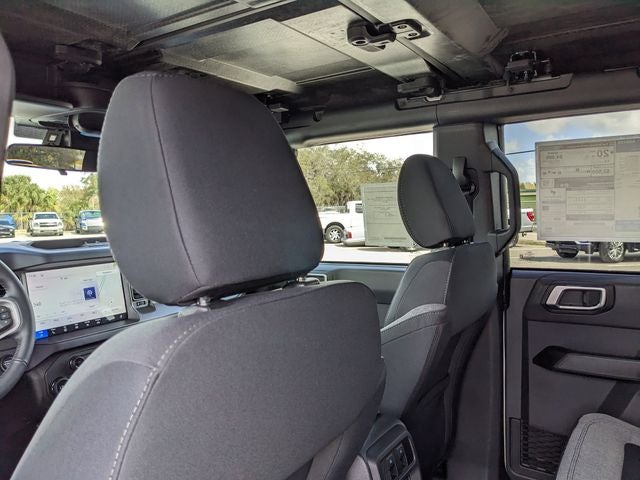 Equipped with Ford Connectivity Package (1-Year Included), Carbonized Gray Molded-in-Color Hard Top, Rear-Window Defroster and Washer, 4-Wheel Disc Brakes, 4.46 Axle Ratio, 7 Speakers, ABS brakes, Air Conditioning, Alloy wheels, AM/FM radio: SiriusXM with 360L, AM/FM Stereo, Auto High-beam Headlights, Brake assist, Cloth Bucket Seats, Compass, Delay-off headlights, Driver door bin, Driver vanity mirror, Dual front impact airbags, Dual front side impact airbags, Electronic Stability Control, Emergency communication system: 911 Assist, Exterior Parking Camera Rear, Front anti-roll bar, Front Bucket Seats, Front Center Armrest, Front reading lights, Front wheel independent suspension, Fully automatic headlights, Heated door mirrors, Illuminated entry, Integrated roll-over protection, Low tire pressure warning, Occupant sensing airbag, Outside temperature display, Overhead airbag, Overhead console, Panic alarm, Passenger door bin, Passenger vanity mirror, Power door mirrors, Power steering, Power windows, Radio data system, Remote keyless entry, Security system, SiriusXM with 360L, Speed control, Split folding rear seat, Steering wheel mounted audio controls, SYNC 4, Tachometer, Telescoping steering wheel, Tilt steering wheel, Traction control, Trip computer, Variably intermittent wipers, and Wheels: 17 Carbonized Gray-Painted Aluminum.