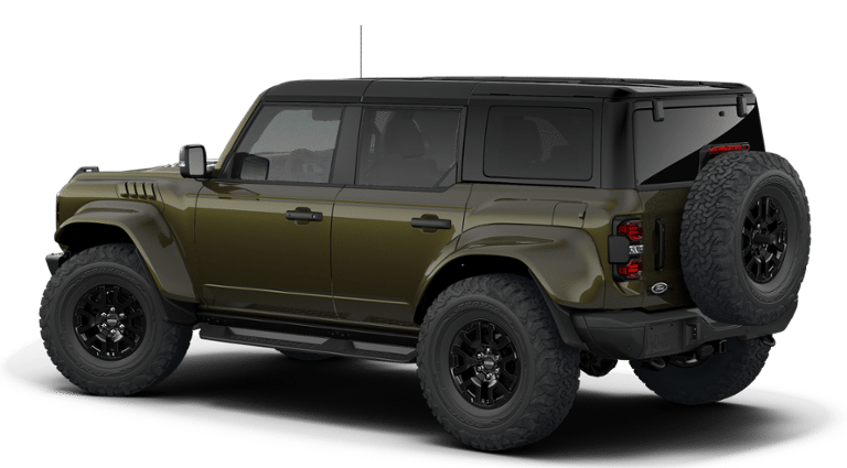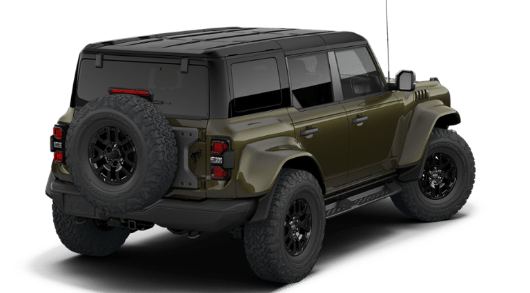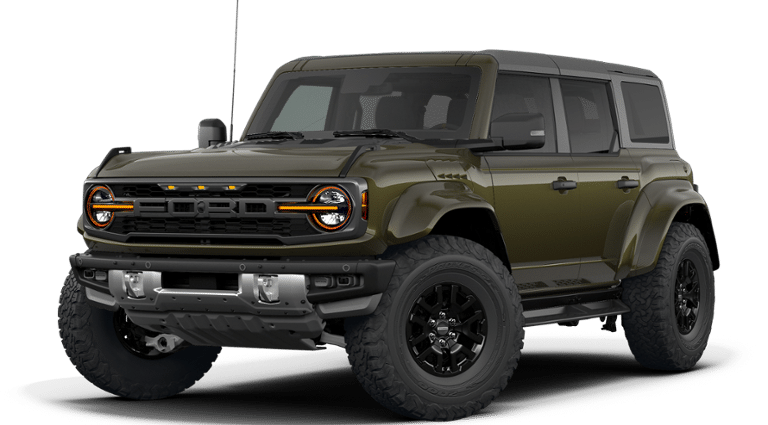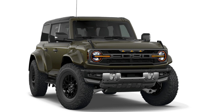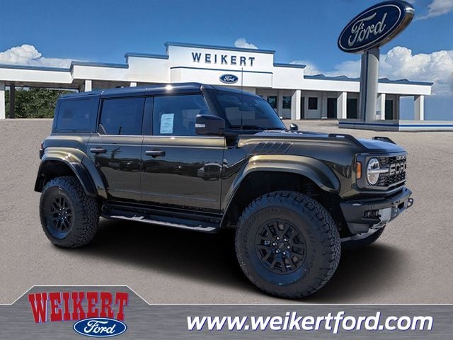 Recent Arrival! $2,975 off MSRP! 2026 Ford Bronco Raptor Shelter Green Metallic Factory MSRP: $86,130 Equipment Group 374A Lux Package, Hard Top Sound Deadening Headliner, Marine Grade Vinyl Bucket Seats, Radio: B&O Sound System by Bang and Olufsen, Rear-Window Defroster and Washer, Shadow Black Painted Hard Top, Wheels: 17 Black High Gloss-Painted Aluminum.