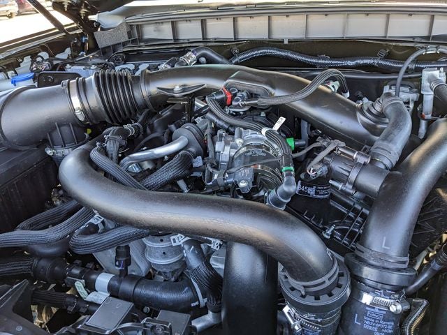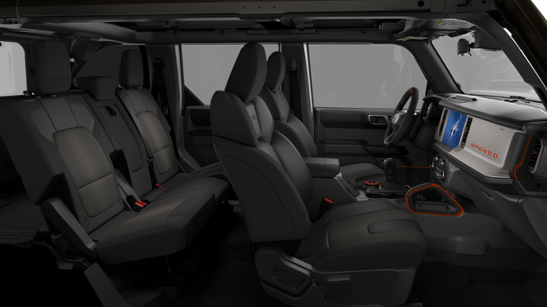 Equipped with Equipment Group 374A Lux Package (Marine Grade Vinyl Bucket Seats, Radio: B&O Sound System by Bang and Olufsen, and Wheels: 17 Black High Gloss-Painted Aluminum), Ford Connectivity Package (1-Year Included), Hard Top Sound Deadening Headliner, Rear-Window Defroster and Washer, Shadow Black Painted Hard Top, 12 Speakers, 4-Wheel Disc Brakes, ABS brakes, Air Conditioning, Alloy wheels, AM/FM radio: SiriusXM with 360L, Auto High-beam Headlights, Auto-dimming Rear-View mirror, Automatic temperature control, Brake assist, Compass, Connected Navigation, Convertible HardTop, Convertible roof lining, Delay-off headlights, Driver door bin, Driver vanity mirror, Dual front impact airbags, Dual front side impact airbags, Electronic Stability Control, Emergency communication system: 911 Assist, Exterior Parking Camera Rear, Front anti-roll bar, Front Bucket Seats, Front Center Armrest, Front dual zone A/C, Front fog lights, Front reading lights, Front wheel independent suspension, Fully automatic headlights, Glass rear window, Heated door mirrors, Heated front seats, Heated steering wheel, Illuminated entry, Integrated roll-over protection, Leather Shift Knob, Leather-Trimmed/Vinyl Bucket Seats, Low tire pressure warning, Navigation system: Connected Navigation, Occupant sensing airbag, Outside temperature display, Overhead airbag, Overhead console, Panic alarm, Passenger door bin, Passenger vanity mirror, Power door mirrors, Power steering, Power windows, Radio data system, Rear anti-roll bar, Rear seat center armrest, Rear window defroster, Rear window wiper, Remote keyless entry, Security system, SiriusXM with 360L, Speed control, Split folding rear seat, Steering wheel mounted audio controls, SYNC 4, Tachometer, Telescoping steering wheel, Tilt steering wheel, Traction control, Trip computer, Turn signal indicator mirrors, Variably intermittent wipers, and Voltmeter.