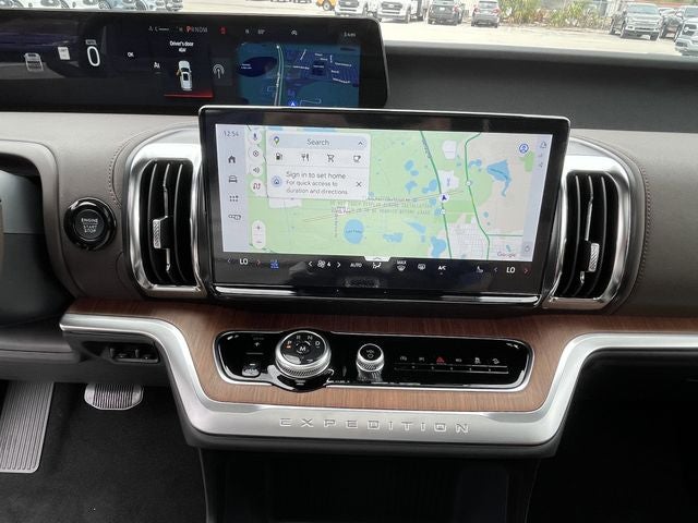 Equipped with Equipment Group 400A (3.73 Axle Ratio, Digital Device Holder, Heated/Ventilated Premium Del Rio Leather Front Captain's Chairs, and Wheels: 22 x 9.0 Diamond Cut Machined Face Aluminum), Ford Connectivity Package (1-Year Included), Power moonroof: Vista Roof, 22 Speakers, 3rd row seats: split-bench, 4-Wheel Disc Brakes, ABS brakes, Adaptive suspension, Adjustable pedals, Air Conditioning, Alloy wheels, AM/FM radio: SiriusXM with 360L, Apple CarPlay/Android Auto, Auto High-beam Headlights, Auto-dimming door mirrors, Auto-dimming Rear-View mirror, Automatic temperature control, Brake assist, Bumpers: body-color, Compass, Delay-off headlights, Driver door bin, Driver vanity mirror, Dual front impact airbags, Dual front side impact airbags, Electronic Stability Control, Emergency communication system: 911 Assist, Exterior Parking Camera Rear, Ford Digital Experience, Four wheel independent suspension, Front anti-roll bar, Front Bucket Seats, Front Center Armrest, Front dual zone A/C, Front reading lights, Fully automatic headlights, Garage door transmitter, Genuine wood dashboard insert, Genuine wood door panel insert, Heated door mirrors, Heated front seats, Heated rear seats, Heated steering wheel, Illuminated entry, Leather steering wheel, Low tire pressure warning, Memory seat, Navigation System, Occupant sensing airbag, Outside temperature display, Overhead airbag, Overhead console, Panic alarm, Passenger door bin, Passenger vanity mirror, Pedal memory, Power door mirrors, Power driver seat, Power passenger seat, Power steering, Power windows, Radio data system, Radio: B&O Unleashed Sound System by Bang & Olufsen, Rain sensing wipers, Rear air conditioning, Rear anti-roll bar, Rear reading lights, Rear window defroster, Rear window wiper, Reclining 3rd row seat, Remote keyless entry, Security system, SiriusXM with 360L, Speed control, Speed-sensing steering, Speed-Sensitive Wipers, Split folding rear seat, Spoiler, Steering wheel memory, Steering wheel mounted audio controls, Tachometer, Telescoping steering wheel, Tilt steering wheel, Traction control, Trip computer, Turn signal indicator mirrors, Variably intermittent wipers, Ventilated front seats, and Voltmeter.
