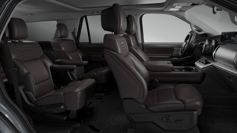 Equipped with Driver's Package (Radio: B&O Play Unleashed and SiriusXM with 360L), Ford Connectivity Package (1-Year Included), Platinum Ultimate Interior Package, Platinum Ultimate Package (Black Headlamp Bezel with Satin Trim Applique, Black Onyx Painted Power Deployable Running Boards, BlueCruise (equipment + 1-Year + 90-Day Plan), Carbon Black Front Bumper with Lit Grille Bar, Chrome Roof Rails with Black End Caps, Engine Sound Enhancer, Front Door Scuff Plates with Met Insert and Bright Rear, High Flow Exhaust System, Multicontour Active Motion Lthr Frnt Captains Chairs, Polished Stainless Steel Beltline Molding, Rear Seat Radio Controls, Rear Side Windows Laminated Glass, Satin Aluminum Expedition Lettering on Side and Hood, Satin Aluminum Platinum Badge on Tailgate, Signature Grille Lighting, and Wheels: 24 x 9.5 Tarnished Dark Metallic), 10 Speakers, 2nd Row Power-Folding Captain's Chairs, 3.73 Axle Ratio, 3rd row seats: split-bench, 4-Wheel Disc Brakes, ABS brakes, Air Conditioning, Alloy wheels, AM/FM radio: SiriusXM with 360L, Apple CarPlay/Android Auto, Auto High-beam Headlights, Auto-dimming door mirrors, Auto-dimming Rear-View mirror, Automatic temperature control, Brake assist, Bumpers: body-color, Compass, Delay-off headlights, Driver door bin, Driver vanity mirror, Dual front impact airbags, Dual front side impact airbags, Electronic Stability Control, Emergency communication system: 911 Assist, Exterior Parking Camera Rear, Ford Digital Experience, Four wheel independent suspension, Front anti-roll bar, Front Bucket Seats, Front Center Armrest, Front dual zone A/C, Front reading lights, Fully automatic headlights, Garage door transmitter, Genuine wood dashboard insert, Genuine wood door panel insert, Heated and Ventilated Leather Front Captain's Chairs, Heated door mirrors, Heated front seats, Heated rear seats, Heated steering wheel, Illuminated entry, Intersection Assist, Leather steering wheel, Low tire pressure warning, Memory seat, Navigation System, Occupant sensing airbag, Outside temperature display, Overhead airbag, Overhead console, Panic alarm, Passenger door bin, Passenger vanity mirror, Power door mirrors, Power driver seat, Power moonroof: Vista Roof, Power passenger seat, Power steering, Power windows, Radio data system, Radio: B&O Sound System by Bang and Olufsen, Rain sensing wipers, Rear air conditioning, Rear anti-roll bar, Rear reading lights, Rear window defroster, Rear window wiper, Reclining 3rd row seat, Remote keyless entry, Security system, Speed control, Speed-sensing steering, Speed-Sensitive Wipers, Split folding rear seat, Spoiler, Steering wheel memory, Steering wheel mounted audio controls, Tachometer, Telescoping steering wheel, Tilt steering wheel, Traction control, Trip computer, Turn signal indicator mirrors, Variably intermittent wipers, Ventilated front seats, Voltmeter, Wheels: 20 x 8.5 Ebony Bright Machined Aluminum, and Wheels: 22 x 9.0 Ebony Bright Machined Face Aluminum.
