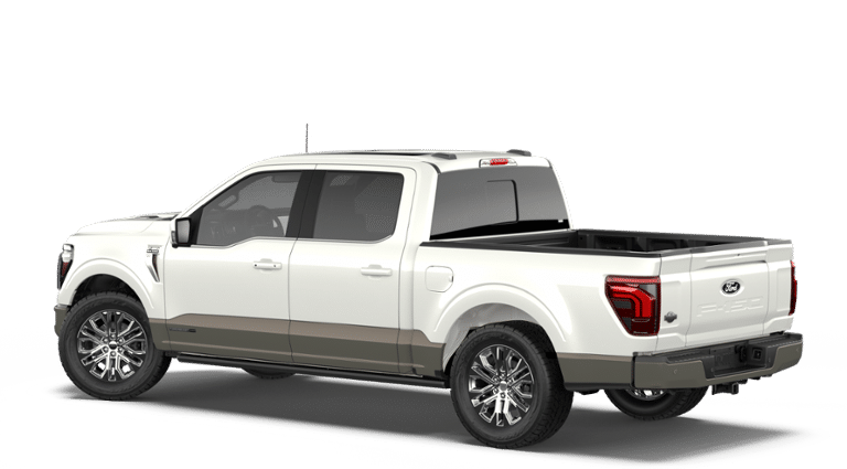 Equipped with Equipment Group 601A High (King Ranch Multicontour Leather Bucket Seats, Power-Deployable Running Boards, Radio: B&O Unleashed Sound System by Bang & Olufsen, and Wheels: 20 Chrome-Like PVD), Ford Connectivity Package (1-Year Included), Internet access capable: 5G Modem - Ford Connectivity Package, Driver's Side SecuriCode Keyless-Entry Keypad, Electronic Locking with 3.73 Axle Ratio, Head-Up Display, LED Sideview Mirror Spotlights, Power Telescoping/Glass/Folding Trailer Tow Mirrors, Tough Bed Spray-in Bedliner, Twin Panel Moonroof, 4-Wheel Disc Brakes, 8 Speakers, ABS brakes, Adjustable pedals, Air Conditioning, Alloy wheels, AM/FM radio: SiriusXM with 360L, Auto High-beam Headlights, Auto tilt-away steering wheel, Auto-dimming door mirrors, Auto-dimming Rear-View mirror, Automatic temperature control, Brake assist, Chrome wheels, Compass, Delay-off headlights, Driver door bin, Driver vanity mirror, Dual front impact airbags, Dual front side impact airbags, Electronic Stability Control, Emergency communication system: SYNC 4 911 Assist, Front anti-roll bar, Front Bucket Seats, Front Center Armrest, Front dual zone A/C, Front fog lights, Front License Plate Bracket, Front reading lights, Front wheel independent suspension, Fully automatic headlights, Garage door transmitter, Genuine wood dashboard insert, Heated door mirrors, Heated front seats, Heated rear seats, Heated steering wheel, Illuminated entry, Leather steering wheel, Low tire pressure warning, Memory seat, Navigation system: Connected Navigation, Occupant sensing airbag, Outside temperature display, Overhead airbag, Overhead console, Panic alarm, Passenger door bin, Passenger vanity mirror, Pedal memory, Power door mirrors, Power driver seat, Power passenger seat, Power steering, Power windows, Pro Access Tailgate, Pro Power Onboard - 2KW, Pro Power Onboard - 7.2KW, Radio data system, Radio: B&O Sound System by Bang and Olufsen, Rain sensing wipers, Rear reading lights, Rear seat center armrest, Rear step bumper, Rear window defroster, Remote keyless entry, Security system, Speed control, Split folding rear seat, Steering wheel memory, Steering wheel mounted audio controls, SYNC 4 with Enhanced Voice Recognition, Tachometer, Telescoping steering wheel, Tilt steering wheel, Traction control, Trip computer, Turn signal indicator mirrors, Variably intermittent wipers, and Ventilated front seats.