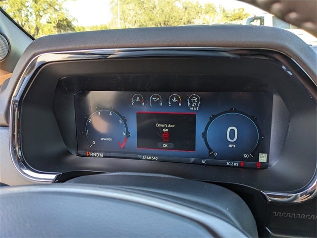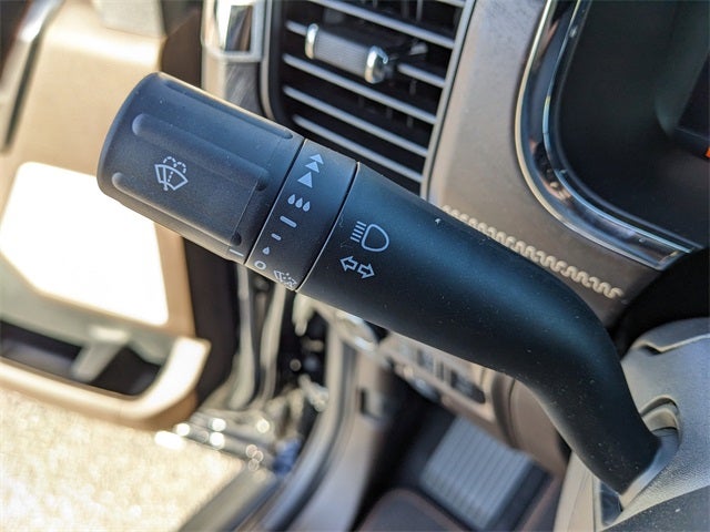 Equipped with Equipment Group 601A High (King Ranch Multicontour Leather Bucket Seats, Power-Deployable Running Boards, Radio: B&O Unleashed Sound System by Bang & Olufsen, and Wheels: 20 Chrome-Like PVD), Ford Connectivity Package (1-Year Included), Internet access capable: 5G Modem - Ford Connectivity Package, Driver's Side SecuriCode Keyless-Entry Keypad, Electronic Locking with 3.73 Axle Ratio, Twin Panel Moonroof, 4-Wheel Disc Brakes, 8 Speakers, ABS brakes, Adjustable pedals, Air Conditioning, Alloy wheels, AM/FM radio: SiriusXM with 360L, Auto High-beam Headlights, Auto tilt-away steering wheel, Auto-dimming door mirrors, Auto-dimming Rear-View mirror, Automatic temperature control, Brake assist, Chrome wheels, Compass, Delay-off headlights, Driver door bin, Driver vanity mirror, Dual front impact airbags, Dual front side impact airbags, Electronic Stability Control, Emergency communication system: SYNC 4 911 Assist, Front anti-roll bar, Front Bucket Seats, Front Center Armrest, Front dual zone A/C, Front fog lights, Front License Plate Bracket, Front reading lights, Front wheel independent suspension, Fully automatic headlights, Garage door transmitter, Genuine wood dashboard insert, Heated door mirrors, Heated front seats, Heated rear seats, Heated steering wheel, Illuminated entry, Leather steering wheel, Low tire pressure warning, Memory seat, Navigation system: Connected Navigation, Occupant sensing airbag, Outside temperature display, Overhead airbag, Overhead console, Panic alarm, Passenger door bin, Passenger vanity mirror, Pedal memory, Power door mirrors, Power driver seat, Power passenger seat, Power steering, Power windows, Pro Access Tailgate, Radio data system, Radio: B&O Sound System by Bang and Olufsen, Rain sensing wipers, Rear reading lights, Rear seat center armrest, Rear step bumper, Rear window defroster, Remote keyless entry, Security system, Speed control, Split folding rear seat, Steering wheel memory, Steering wheel mounted audio controls, SYNC 4 with Enhanced Voice Recognition, Tachometer, Telescoping steering wheel, Tilt steering wheel, Traction control, Trip computer, Turn signal indicator mirrors, Variably intermittent wipers, and Ventilated front seats.