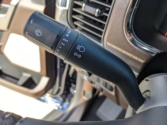 Equipped with Equipment Group 601A High (King Ranch Multicontour Leather Bucket Seats, Power-Deployable Running Boards, Radio: B&O Unleashed Sound System by Bang & Olufsen, and Wheels: 20 Chrome-Like PVD), Ford Connectivity Package (1-Year Included), Internet access capable: 5G Modem - Ford Connectivity Package, Driver's Side SecuriCode Keyless-Entry Keypad, Electronic Locking with 3.73 Axle Ratio, Twin Panel Moonroof, 4-Wheel Disc Brakes, 8 Speakers, ABS brakes, Adjustable pedals, Air Conditioning, Alloy wheels, AM/FM radio: SiriusXM with 360L, Auto High-beam Headlights, Auto tilt-away steering wheel, Auto-dimming door mirrors, Auto-dimming Rear-View mirror, Automatic temperature control, Brake assist, Chrome wheels, Compass, Delay-off headlights, Driver door bin, Driver vanity mirror, Dual front impact airbags, Dual front side impact airbags, Electronic Stability Control, Emergency communication system: SYNC 4 911 Assist, Front anti-roll bar, Front Bucket Seats, Front Center Armrest, Front dual zone A/C, Front fog lights, Front reading lights, Front wheel independent suspension, Fully automatic headlights, Garage door transmitter, Genuine wood dashboard insert, Heated door mirrors, Heated front seats, Heated rear seats, Heated steering wheel, Illuminated entry, Leather steering wheel, Low tire pressure warning, Memory seat, Navigation system: Connected Navigation, Occupant sensing airbag, Outside temperature display, Overhead airbag, Overhead console, Panic alarm, Passenger door bin, Passenger vanity mirror, Pedal memory, Power door mirrors, Power driver seat, Power passenger seat, Power steering, Power windows, Pro Access Tailgate, Radio data system, Radio: B&O Sound System by Bang and Olufsen, Rain sensing wipers, Rear reading lights, Rear seat center armrest, Rear step bumper, Rear window defroster, Remote keyless entry, Security system, Speed control, Split folding rear seat, Steering wheel memory, Steering wheel mounted audio controls, SYNC 4 with Enhanced Voice Recognition, Tachometer, Telescoping steering wheel, Tilt steering wheel, Traction control, Trip computer, Turn signal indicator mirrors, Variably intermittent wipers, and Ventilated front seats.