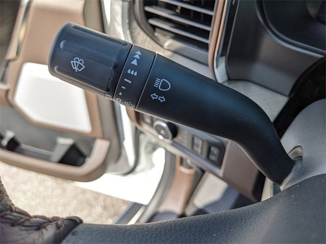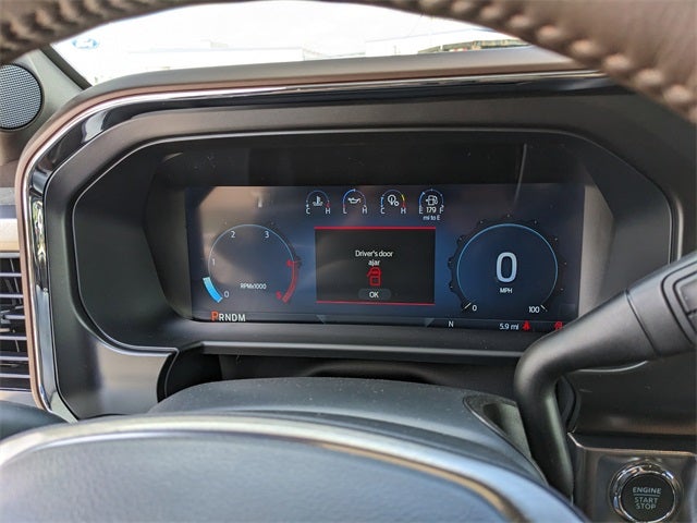 Equipped with FX4 Off-Road Package (Hill Descent Control, Off-Road Specifically Tuned Shock Absorbers, and Unique FX4 Off-Road Box Decal), High Capacity 11.6 Axle Upgrade Package, Order Code 700A (Wheels: 20 Bright Machined Aluminum, Flow-Through Console, Radio: B&O Unleashed Sound System by Bang & Olufsen, and Unique King Ranch Leather 40/Console/40 Seats), Ford Connectivity Package (1-Year Included), Internet access capable: 5G Modem - Ford Connectivity Package, All-Weather Floor Mats, Power-Deployable Running Boards, Twin Panel Power Moonroof, 14 Speakers, 34 Gallon Fuel Tank, 4-Wheel Disc Brakes, 410 Amp Dual Alternators, ABS brakes, Active Cruise Control, Adjustable pedals, Air Conditioning, Alloy wheels, AM/FM radio: SiriusXM with 360L, Auto High-beam Headlights, Auto tilt-away steering wheel, Auto-dimming Rear-View mirror, Automatic temperature control, Brake assist, Compass, Delay-off headlights, Driver door bin, Driver vanity mirror, Dual front impact airbags, Dual front side impact airbags, Electronic Stability Control, Emergency communication system: SYNC 4 911 Assist, Front anti-roll bar, Front Bucket Seats, Front Center Armrest, Front dual zone A/C, Front fog lights, Front License Plate Bracket, Front reading lights, Fully automatic headlights, Garage door transmitter, Heads-Up Display, Heated door mirrors, Heated front seats, Heated rear seats, Heated steering wheel, Illuminated entry, Leather steering wheel, Low tire pressure warning, Memory seat, Navigation system: Connected Navigation, Outside temperature display, Overhead airbag, Overhead console, Panic alarm, Passenger door bin, Passenger vanity mirror, Pedal memory, Power door mirrors, Power driver seat, Power passenger seat, Power steering, Power windows, Rain sensing wipers, Rear reading lights, Rear seat center armrest, Rear step bumper, Rear window defroster, Remote keyless entry, Security system, Speed control, Split folding rear seat, Steering wheel memory, Steering wheel mounted A/C controls, Steering wheel mounted audio controls, Tachometer, Telescoping steering wheel, Tilt steering wheel, Traction control, Trip computer, Turn signal indicator mirrors, Variably intermittent wipers, and Ventilated front seats.