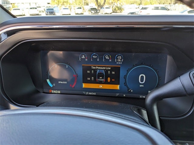 Equipped with Ford Connectivity Package (1-Year Included), FX4 Off-Road Package (Hill Descent Control, Off-Road Specifically Tuned Shock Absorbers, and Unique FX4 Off-Road Box Decal), GVWR: F-250 >10K Package, Order Code 700A (Flow-Through Console, Radio: B&O Unleashed Sound System by Bang & Olufsen, SiriusXM with 360L, SYNC 4 with Enhanced Voice Recognition, Unique King Ranch Leather 40/Console/40 Seats, and Wheels: 20 Bright Machined Aluminum), High Capacity 11.6 Axle Upgrade Package, Internet access capable: 5G Modem - Ford Connectivity Package, Electronic-Locking with 3.31 Axle Ratio, Power-Deployable Running Boards, Twin Panel Power Moonroof, 14 Speakers, 34 Gallon Fuel Tank, 4-Wheel Disc Brakes, 410 Amp Dual Alternators, ABS brakes, Adjustable pedals, Air Conditioning, All-Weather Floor Mats, Alloy wheels, AM/FM radio: SiriusXM with 360L, Auto High-beam Headlights, Auto tilt-away steering wheel, Auto-dimming Rear-View mirror, Automatic temperature control, Brake assist, Compass, Delay-off headlights, Driver door bin, Driver vanity mirror, Dual front impact airbags, Dual front side impact airbags, Electronic Stability Control, Emergency communication system: SYNC 4 911 Assist, Front anti-roll bar, Front Bucket Seats, Front Center Armrest, Front dual zone A/C, Front fog lights, Front License Plate Bracket, Front reading lights, Fully automatic headlights, Garage door transmitter, Heads-Up Display, Heated door mirrors, Heated front seats, Heated rear seats, Heated steering wheel, Illuminated entry, Leather steering wheel, Low tire pressure warning, Memory seat, Navigation system: Connected Navigation, Outside temperature display, Overhead airbag, Overhead console, Panic alarm, Passenger door bin, Passenger vanity mirror, Pedal memory, Power door mirrors, Power driver seat, Power passenger seat, Power steering, Power windows, Rain sensing wipers, Rear reading lights, Rear seat center armrest, Rear step bumper, Rear window defroster, Remote keyless entry, Security system, Speed control, Split folding rear seat, Steering wheel memory, Steering wheel mounted A/C controls, Steering wheel mounted audio controls, Tachometer, Telescoping steering wheel, Tilt steering wheel, Traction control, Trip computer, Turn signal indicator mirrors, Variably intermittent wipers, and Ventilated front seats.
