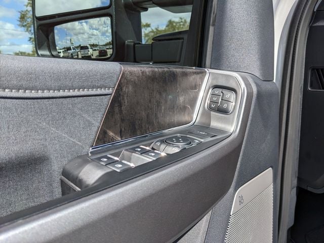 Equipped with Black Appearance Package (6 Ebony Black Angular Running Boards, Black Painted Front Grille Surround, Body Color Front and Rear Bumpers, and Ebony Black Painted Mirror Caps), Ford Connectivity Package (1-Year Included), GVWR: F-250 >10K Package, High Capacity 11.6 Axle Upgrade Package, Internet access capable: 5G Modem - Ford Connectivity Package, Lariat Premium Package (Power-Sliding Rear-Window with Defrost, Privacy Glass, Pro Trailer Backup Assist, and Pro Trailer Hitch Assist), Lariat Ultimate Package (4-Way Adjustable Headrests, Head-Up Display, Power-Deployable Running Boards, Radio: B&O Unleashed Sound System by Bang & Olufsen, SiriusXM with 360L, SYNC 4 with Enhanced Voice Recognition, and Tailgate Step and Handle), Order Code 608A (Flow-Through Console, Front ActiveX Trimmed 40/Console/40 Seats, Radio: B&O Sound System by Bang and Olufsen, and Wheels: 18 Bright Machined and Carbonized Gray Aluminum), 4-Wheel Disc Brakes, 410 Amp Dual Alternators, 8 Speakers, ABS brakes, Adaptive Cruise Control with Stop-and-Go, Adjustable pedals, Air Conditioning, Alloy wheels, AM/FM radio: SiriusXM with 360L, Auto High-beam Headlights, Auto-dimming Rear-View mirror, Automatic High Beam, Automatic temperature control, BLIS with Cross-Traffic Alert, Brake assist, Bumpers: chrome, Compass, Delay-off headlights, Driver door bin, Driver vanity mirror, Dual AGM 68 AH Battery, Dual front impact airbags, Dual front side impact airbags, Electronic Stability Control, Emergency communication system: SYNC 4 911 Assist, Engine Block Heater, Front and Rear Parking Sensors, Front anti-roll bar, Front Bucket Seats, Front Center Armrest, Front dual zone A/C, Front fog lights, Front License Plate Bracket, Front reading lights, Fully automatic headlights, Garage door transmitter, Heated door mirrors, Heated front seats, Heated rear seats, Heated steering wheel, Illuminated entry, Lane-Keeping System, Low tire pressure warning, Memory seat, Navigation system: Connected Navigation, Outside temperature display, Overhead airbag, Overhead console, Panic alarm, Passenger door bin, Passenger vanity mirror, Pedal memory, Post-Collision Braking, Power door mirrors, Power driver seat, Power passenger seat, Power steering, Power windows, Pre-Collision Assist, Rain sensing wipers, Rear Parking Sensors, Rear reading lights, Rear seat center armrest, Rear step bumper, Rear window defroster, Remote keyless entry, SecuriCode Keyless Entry Keypad (driver's Side), Security system, Speed control, Split folding rear seat, Steering wheel mounted audio controls, Tachometer, Telescoping steering wheel, Tilt steering wheel, Traction control, Trip computer, Turn signal indicator mirrors, Twin Panel Power Moonroof, Upfitter Switches (6), Variably intermittent wipers, Vehicle Integration System 2.0, and Ventilated front seats.