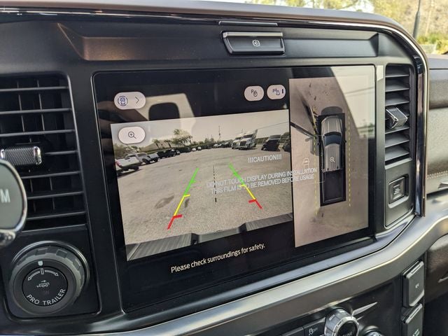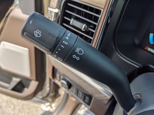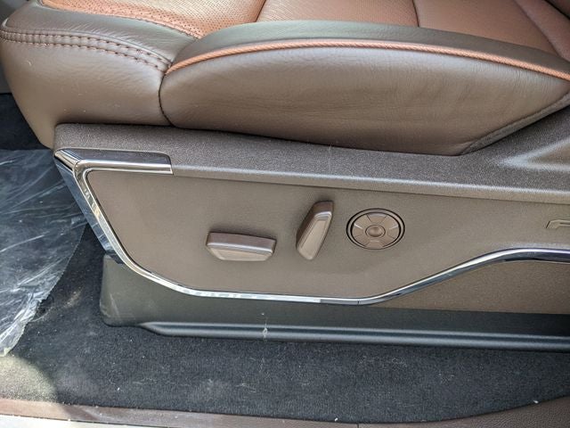Equipped with Chrome Package (Chrome Door Handles, Chrome Exhaust Tip, Chrome Front and Rear Bumpers, Unique Chrome Mirror Caps, and Wheels: 20 Chrome PVD Aluminum), Ford Connectivity Package (1-Year Included), Order Code 710A (Flow-Through Console, Radio: B&O Unleashed Sound System by Bang & Olufsen, SiriusXM with 360L, SYNC 4 with Enhanced Voice Recognition, and Unique King Ranch Leather 40/Console/40 Seats), Internet access capable: 5G Modem - Ford Connectivity Package, All-Weather Floor Mats, Electronic-Locking with 3.55 Axle Ratio, SecuriCode Keyless Entry Keypad (driver's Side), 14 Speakers, 34 Gallon Fuel Tank, 4-Wheel Disc Brakes, ABS brakes, Adjustable pedals, Air Conditioning, Alloy wheels, AM/FM radio: SiriusXM with 360L, Auto High-beam Headlights, Auto tilt-away steering wheel, Auto-dimming Rear-View mirror, Automatic temperature control, Brake assist, Compass, Delay-off headlights, Driver door bin, Driver vanity mirror, Dual front impact airbags, Dual front side impact airbags, Electronic Stability Control, Emergency communication system: SYNC 4 911 Assist, Front anti-roll bar, Front Bucket Seats, Front Center Armrest, Front dual zone A/C, Front fog lights, Front License Plate Bracket, Front reading lights, Fully automatic headlights, Garage door transmitter, Heads-Up Display, Heated door mirrors, Heated front seats, Heated rear seats, Heated steering wheel, Illuminated entry, Leather steering wheel, Low tire pressure warning, Memory seat, Navigation system: Connected Navigation, Outside temperature display, Overhead airbag, Overhead console, Panic alarm, Passenger door bin, Passenger vanity mirror, Pedal memory, Power door mirrors, Power driver seat, Power passenger seat, Power steering, Power windows, Rain sensing wipers, Rear reading lights, Rear seat center armrest, Rear step bumper, Rear window defroster, Remote keyless entry, Security system, Speed control, Split folding rear seat, Steering wheel memory, Steering wheel mounted A/C controls, Steering wheel mounted audio controls, Tachometer, Telescoping steering wheel, Tilt steering wheel, Traction control, Trip computer, Turn signal indicator mirrors, Twin Panel Power Moonroof, Variably intermittent wipers, and Ventilated front seats.