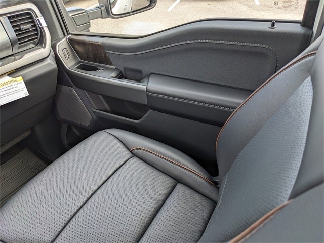 Equipped with Order Code 618A (Flow-Through Console and Front ActiveX Trimmed 40/Console/40 Seats), Ford Connectivity Package (1-Year Included), Internet access capable: 5G Modem - Ford Connectivity Package, Power-Deployable Running Boards, Ventilated front seats, 190 Amp Alternator, 4-Wheel Disc Brakes, 8 Speakers, ABS brakes, Adjustable pedals, Air Conditioning, All-Weather Floor Mats, Alloy wheels, AM/FM radio: SiriusXM with 360L, Auto High-beam Headlights, Auto-dimming Rear-View mirror, Automatic temperature control, Brake assist, Bumpers: chrome, Compass, Delay-off headlights, Driver door bin, Driver vanity mirror, Dual AGM 68 AH Battery, Dual front impact airbags, Dual front side impact airbags, Electronic Stability Control, Emergency communication system: SYNC 4 911 Assist, Front anti-roll bar, Front Bucket Seats, Front Center Armrest, Front dual zone A/C, Front fog lights, Front License Plate Bracket, Front reading lights, Fully automatic headlights, Garage door transmitter, Heated door mirrors, Heated front seats, Heated rear seats, Heated steering wheel, Illuminated entry, Low tire pressure warning, Memory seat, Navigation system: Connected Navigation, Outside temperature display, Overhead airbag, Overhead console, Panic alarm, Passenger door bin, Passenger vanity mirror, Pedal memory, Power door mirrors, Power driver seat, Power passenger seat, Power steering, Power windows, Privacy Glass, Rain sensing wipers, Rear Parking Sensors, Rear reading lights, Rear seat center armrest, Rear step bumper, Rear window defroster, Remote keyless entry, Security system, Speed control, Split folding rear seat, Steering wheel mounted audio controls, Tachometer, Telescoping steering wheel, Tilt steering wheel, Traction control, Trip computer, Turn signal indicator mirrors, and Variably intermittent wipers.