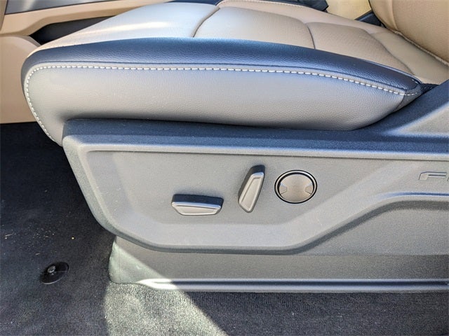 Equipped with Chrome Package (6 Angular Bright Anodized Step Bars, Chrome Door Handles, Chrome Exhaust Tip, Unique Chrome Mirror Caps, and Wheels: 20 Chrome PVD Aluminum), FX4 Off-Road Package (Hill Descent Control, Off-Road Specifically Tuned Shock Absorbers, and Unique FX4 Off-Road Box Decal), Order Code 618A (Flow-Through Console and Front ActiveX Trimmed 40/Console/40 Seats), Ford Connectivity Package (1-Year Included), Internet access capable: 5G Modem - Ford Connectivity Package, All-Weather Floor Mats, Power-Deployable Running Boards, 190 Amp Alternator, 4-Wheel Disc Brakes, 8 Speakers, ABS brakes, Adjustable pedals, Air Conditioning, Alloy wheels, AM/FM radio: SiriusXM with 360L, Auto High-beam Headlights, Auto-dimming Rear-View mirror, Automatic temperature control, Brake assist, Bumpers: chrome, Compass, Delay-off headlights, Driver door bin, Driver vanity mirror, Dual AGM 68 AH Battery, Dual front impact airbags, Dual front side impact airbags, Electronic Stability Control, Emergency communication system: SYNC 4 911 Assist, Front anti-roll bar, Front Bucket Seats, Front Center Armrest, Front dual zone A/C, Front fog lights, Front License Plate Bracket, Front reading lights, Fully automatic headlights, Garage door transmitter, Heated door mirrors, Heated front seats, Heated rear seats, Heated steering wheel, Illuminated entry, Low tire pressure warning, Memory seat, Navigation system: Connected Navigation, Outside temperature display, Overhead airbag, Overhead console, Panic alarm, Passenger door bin, Passenger vanity mirror, Pedal memory, Power door mirrors, Power driver seat, Power passenger seat, Power steering, Power windows, Privacy Glass, Rain sensing wipers, Rear Parking Sensors, Rear reading lights, Rear seat center armrest, Rear step bumper, Rear window defroster, Remote keyless entry, Security system, Speed control, Split folding rear seat, Steering wheel mounted audio controls, Tachometer, Telescoping steering wheel, Tilt steering wheel, Traction control, Trip computer, Turn signal indicator mirrors, Variably intermittent wipers, and Ventilated front seats.