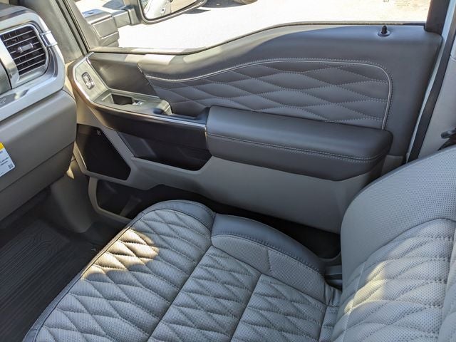 Equipped with Ford Connectivity Package (1-Year Included), FX4 Off-Road Package (Hill Descent Control, Off-Road Specifically Tuned Shock Absorbers, and Unique FX4 Off-Road Box Decal), Order Code 713A (Flow-Through Console, Radio: B&O Unleashed Sound System by Bang & Olufsen, SiriusXM with 360L, SYNC 4 with Enhanced Voice Recognition, Unique Platinum Leather 40/Console/40 Seats, and Wheels: 20 Bright Machined and Painted Aluminum), Platinum Plus Package (Illuminated Scuff Plates, Premium Leather Instrument Panel Topper, Premium Luxury Leather-Wrapped Steering Wheel, Premium Venetian Leather Door Panel, Pro Power Onboard - 2kW, Satin Chrome Door Handles, Twin Panel Power Moonroof, Unique Platinum Plus Luxury Leather 40/Console/40 Seats, Unique Satin Finish Grille, Unique Split Center Console Armrest, Upfitter Switches (6), and Wheels: 20 Bright Machined Aluminum), Internet access capable: 5G Modem - Ford Connectivity Package, Electronic-Locking with 3.55 Axle Ratio, Power-Deployable Running Boards, SecuriCode Keyless Entry Keypad (driver's Side), 14 Speakers, 34 Gallon Fuel Tank, 4-Wheel Disc Brakes, ABS brakes, Active Cruise Control, Adjustable pedals, Air Conditioning, All-Weather Floor Mats, Alloy wheels, AM/FM radio: SiriusXM with 360L, Auto High-beam Headlights, Auto tilt-away steering wheel, Auto-dimming Rear-View mirror, Automatic temperature control, Brake assist, Bumpers: body-color, Compass, Delay-off headlights, Driver door bin, Driver vanity mirror, Dual front impact airbags, Dual front side impact airbags, Electronic Stability Control, Emergency communication system: SYNC 4 911 Assist, First Aid Kit with Ford Logo, Front and Rear Wheel Well Liners, Front anti-roll bar, Front Bucket Seats, Front Center Armrest, Front dual zone A/C, Front fog lights, Front License Plate Bracket, Front reading lights, Fully automatic headlights, Garage door transmitter, Heads-Up Display, Heated door mirrors, Heated front seats, Heated rear seats, Heated steering wheel, Illuminated entry, Leather steering wheel, Low tire pressure warning, Memory seat, Navigation system: Connected Navigation, Outside temperature display, Overhead airbag, Overhead console, Panic alarm, Passenger door bin, Passenger vanity mirror, Pedal memory, Power door mirrors, Power driver seat, Power passenger seat, Power steering, Power windows, Rain sensing wipers, Rear reading lights, Rear seat center armrest, Rear step bumper, Rear window defroster, Remote keyless entry, Security system, Speed control, Split folding rear seat, Steering wheel memory, Steering wheel mounted A/C controls, Steering wheel mounted audio controls, Tachometer, Telescoping steering wheel, Tilt steering wheel, Traction control, Trip computer, Turn signal indicator mi