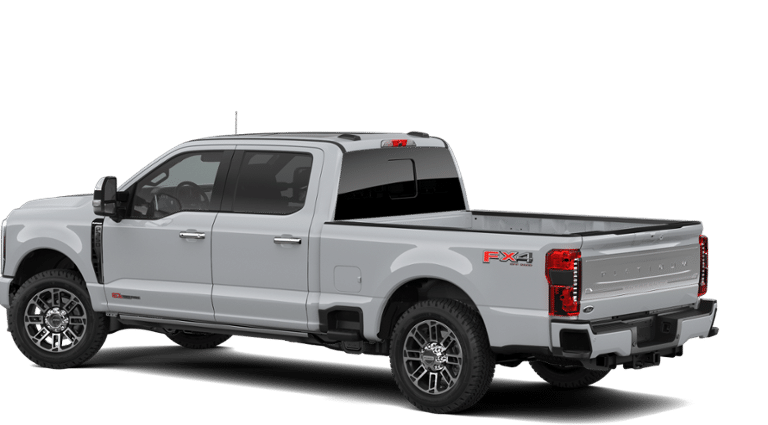Equipped with 5th Wheel/Gooseneck Hitch Prep Package, Ford Connectivity Package (1-Year Included), FX4 Off-Road Package (Hill Descent Control, Off-Road Specifically Tuned Shock Absorbers, and Unique FX4 Off-Road Box Decal), Internet access capable: 5G Modem - Ford Connectivity Package, Order Code 713A (Flow-Through Console, Radio: B&O Unleashed Sound System by Bang & Olufsen, SiriusXM with 360L, SYNC 4 with Enhanced Voice Recognition, Unique Platinum Leather 40/Console/40 Seats, and Wheels: 20 Bright Machined and Painted Aluminum), Platinum Plus Package (Illuminated Scuff Plates, Premium Leather Instrument Panel Topper, Premium Luxury Leather-Wrapped Steering Wheel, Premium Venetian Leather Door Panel, Satin Chrome Door Handles, Unique Satin Finish Grille, and Unique Split Center Console Armrest), 14 Speakers, 4-Wheel Disc Brakes, ABS brakes, Adjustable pedals, Air Conditioning, Alloy wheels, AM/FM radio: SiriusXM with 360L, Auto High-beam Headlights, Auto tilt-away steering wheel, Auto-dimming Rear-View mirror, Automatic temperature control, Brake assist, Bumpers: body-color, Compass, Delay-off headlights, Driver door bin, Driver vanity mirror, Dual front impact airbags, Dual front side impact airbags, Electronic Stability Control, Emergency communication system: SYNC 4 911 Assist, Front anti-roll bar, Front Bucket Seats, Front Center Armrest, Front dual zone A/C, Front fog lights, Front reading lights, Fully automatic headlights, Garage door transmitter, Heads-Up Display, Heated door mirrors, Heated front seats, Heated rear seats, Heated steering wheel, Illuminated entry, Leather steering wheel, Low tire pressure warning, Memory seat, Navigation system: Connected Navigation, Outside temperature display, Overhead airbag, Overhead console, Panic alarm, Passenger door bin, Passenger vanity mirror, Pedal memory, Power door mirrors, Power driver seat, Power passenger seat, Power steering, Power windows, Rain sensing wipers, Rear reading lights, Rear seat center armrest, Rear step bumper, Rear window defroster, Remote keyless entry, Security system, Speed control, Split folding rear seat, Steering wheel memory, Steering wheel mounted A/C controls, Steering wheel mounted audio controls, Tachometer, Telescoping steering wheel, Tilt steering wheel, Traction control, Trip computer, Turn signal indicator mirrors, Variably intermittent wipers, and Ventilated front seats.
