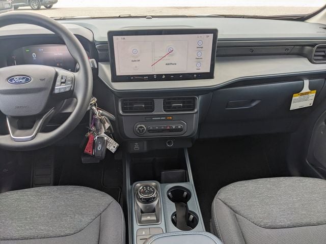Equipped with Equipment Group 100A (Front Cloth Bucket Seats, Radio: AM/FM Stereo with 6 Speakers, SiriusXM with 360L, SYNC 4 with Enhanced Voice Recognition, and Wheels: 17 Steel with Sparkle Silver Painted Cover), Ford Connectivity Package (1-Year Included), Internet access capable: 5G Modem - Ford Connectivity Package, 2.91 Axle Ratio, 4-Wheel Disc Brakes, 6 Speakers, ABS brakes, Air Conditioning, AM/FM radio: SiriusXM with 360L, Apple CarPlay/Android Auto, Auto High Beams, Auto High-beam Headlights, Automatic temperature control, Brake assist, Bumpers: body-color, Compass, Delay-off headlights, Driver door bin, Driver vanity mirror, Dual front impact airbags, Dual front side impact airbags, Electronic Stability Control, Emergency communication system: SYNC 4 911 Assist, Exterior Parking Camera Rear, Front anti-roll bar, Front Bucket Seats, Front Center Armrest, Front reading lights, Front wheel independent suspension, Fully automatic headlights, Illuminated entry, Intersection Assist, Knee airbag, Lane-Keeping System, Low tire pressure warning, Occupant sensing airbag, Outside temperature display, Overhead airbag, Overhead console, Panic alarm, Passenger door bin, Passenger vanity mirror, Power steering, Power windows, Pre-Collision Assist with Automatic Emergency Braking, Radio data system, Rear anti-roll bar, Rear step bumper, Rear-View Camera, Remote keyless entry, Speed control, Speed-sensing steering, Steering wheel mounted audio controls, Telescoping steering wheel, Tilt steering wheel, Traction control, and Trip computer.