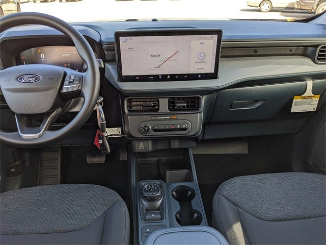 Equipped with Equipment Group 100A (Front Cloth Bucket Seats, Radio: AM/FM Stereo with 6 Speakers, SiriusXM with 360L, SYNC 4 with Enhanced Voice Recognition, and Wheels: 17 Steel with Sparkle Silver Painted Cover), Ford Connectivity Package (1-Year Included), Internet access capable: 5G Modem - Ford Connectivity Package, 2.91 Axle Ratio, 4-Wheel Disc Brakes, 6 Speakers, ABS brakes, Air Conditioning, AM/FM radio: SiriusXM with 360L, Apple CarPlay/Android Auto, Auto High Beams, Auto High-beam Headlights, Automatic temperature control, Brake assist, Bumpers: body-color, Compass, Delay-off headlights, Driver door bin, Driver vanity mirror, Dual front impact airbags, Dual front side impact airbags, Electronic Stability Control, Emergency communication system: SYNC 4 911 Assist, Exterior Parking Camera Rear, Front anti-roll bar, Front Bucket Seats, Front Center Armrest, Front reading lights, Front wheel independent suspension, Fully automatic headlights, Illuminated entry, Intersection Assist, Knee airbag, Lane-Keeping System, Low tire pressure warning, Occupant sensing airbag, Outside temperature display, Overhead airbag, Overhead console, Panic alarm, Passenger door bin, Passenger vanity mirror, Power steering, Power windows, Pre-Collision Assist with Automatic Emergency Braking, Radio data system, Rear anti-roll bar, Rear step bumper, Rear-View Camera, Remote keyless entry, Speed control, Speed-sensing steering, Steering wheel mounted audio controls, Telescoping steering wheel, Tilt steering wheel, Traction control, and Trip computer.