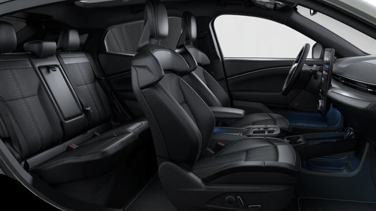 Equipped with Panoramic Fixed-Glass Roof Package, 10 Speakers, 4-Wheel Disc Brakes, ABS brakes, Air Conditioning, Alloy wheels, AM/FM radio: SiriusXM with 360L, Apple CarPlay/Android Auto, Auto High-beam Headlights, Auto-dimming Rear-View mirror, Automatic temperature control, Brake assist, Bumpers: body-color, Compass, Delay-off headlights, Drainable Frunk, Driver door bin, Driver vanity mirror, Dual front impact airbags, Dual front side impact airbags, Electronic Stability Control, Emergency communication system: 911 Assist, Exterior Parking Camera Rear, Four wheel independent suspension, Front anti-roll bar, Front Bucket Seats, Front Center Armrest, Front dual zone A/C, Front reading lights, Fully automatic headlights, Garage door transmitter, Heated door mirrors, Heated front seats, Heated Perforated ActiveX Performance Seats, Heated steering wheel, Illuminated entry, Knee airbag, Low tire pressure warning, Memory seat, Mobile Power Cord (120V/240V), Navigation system: Connected Navigation, Occupant sensing airbag, Outside temperature display, Overhead airbag, Overhead console, Panic alarm, Passenger door bin, Passenger vanity mirror, Power door mirrors, Power driver seat, Power Liftgate, Power passenger seat, Power steering, Power windows, Radio data system, Radio: B&O Sound System by Bang and Olufsen, Rain sensing wipers, Rear anti-roll bar, Rear seat center armrest, Rear side impact airbag, Rear window defroster, Rear window wiper, Remote keyless entry, Security system, SiriusXM with 360L, Speed control, Speed-sensing steering, Speed-Sensitive Wipers, Split folding rear seat, Spoiler, Steering wheel mounted audio controls, SYNC 4A with Enhanced Voice Recognition, Telescoping steering wheel, Tilt steering wheel, Tire Inflator and Sealant Kit, Traction control, Trip computer, Turn signal indicator mirrors, Variably intermittent wipers, and Wheels: 20 Monochromatic High Gloss Black-Painted. Price includes applicable rebates and excludes tax, title, license and $399 dealer fee: $1000 - Retail Bonus Cash. Exp. 04/30/2026