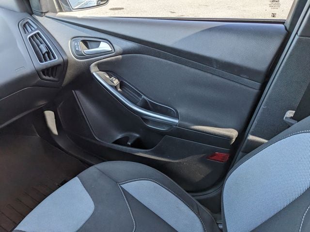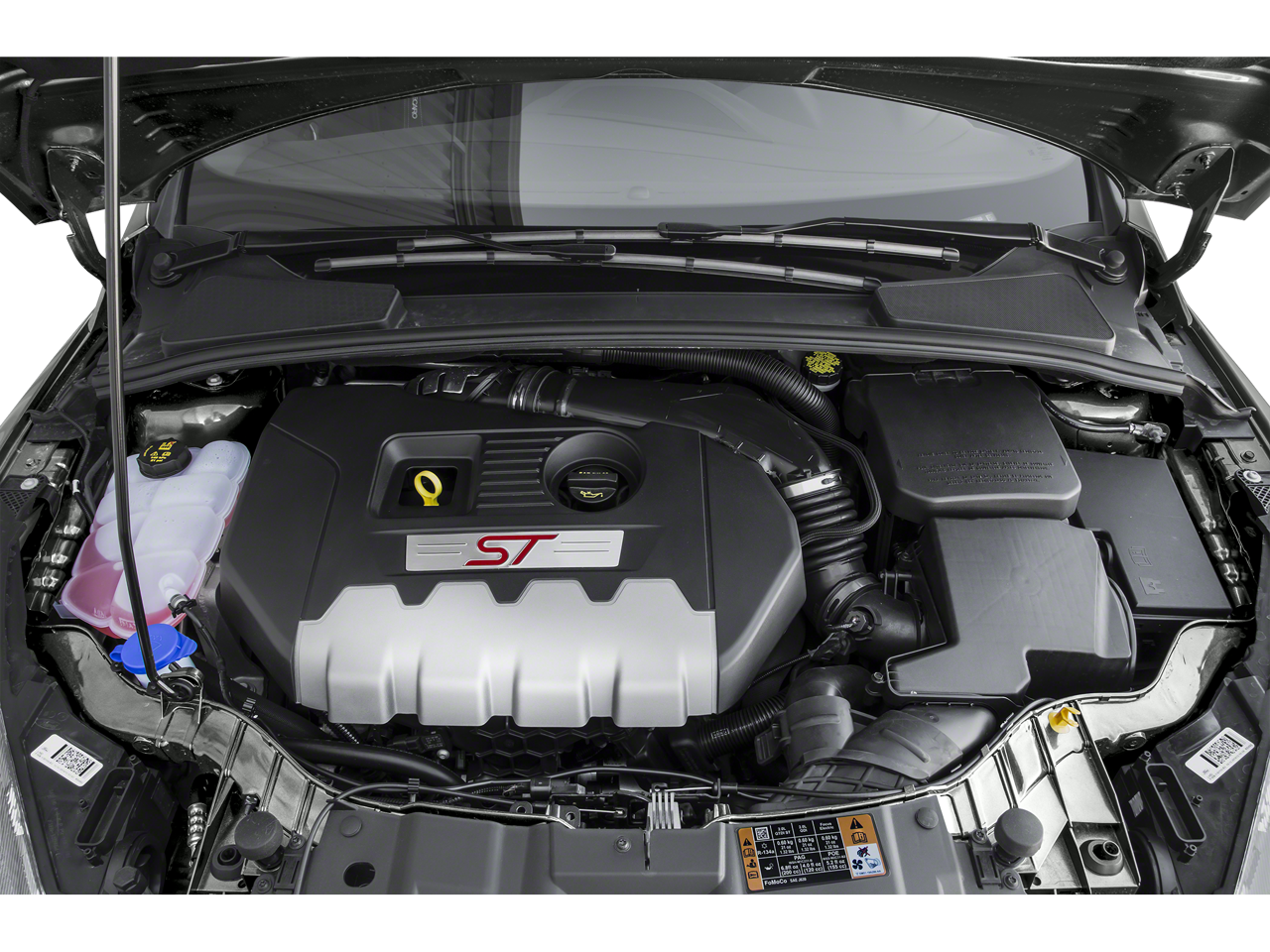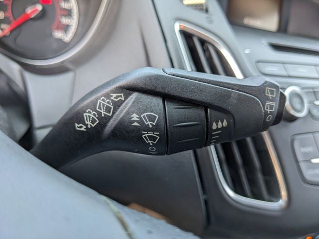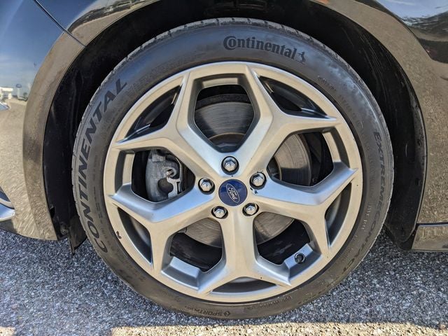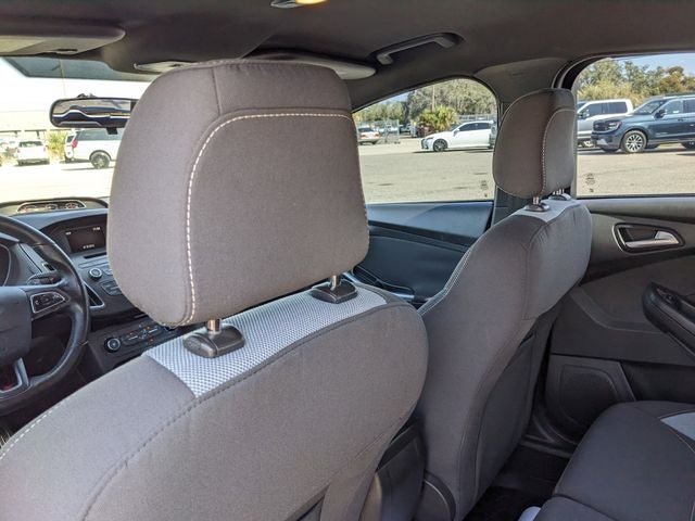Equipped with 4-Wheel Disc Brakes, 6 Speakers, ABS brakes, Air Conditioning, Alloy wheels, AM/FM radio, AM/FM/CD/MP3 w/6 Speakers, Brake assist, Bumpers: body-color, CD player, Cloth Sport Seats w/ST Logo, Compass, Delay-off headlights, Driver door bin, Driver vanity mirror, Dual front impact airbags, Dual front side impact airbags, Electronic Stability Control, Exterior Parking Camera Rear, Four wheel independent suspension, Front anti-roll bar, Front Bucket Seats, Front Center Armrest, Front fog lights, Front reading lights, Fully automatic headlights, Illuminated entry, Knee airbag, Leather steering wheel, Low tire pressure warning, MP3 decoder, Occupant sensing airbag, Outside temperature display, Overhead airbag, Panic alarm, Passenger door bin, Passenger vanity mirror, Power door mirrors, Power steering, Power windows, Radio data system, Rear anti-roll bar, Rear window defroster, Rear window wiper, Remote keyless entry, Security system, Speed control, Split folding rear seat, Spoiler, Steering wheel mounted audio controls, SYNC, Tachometer, Telescoping steering wheel, Tilt steering wheel, Traction control, Trip computer, Turn signal indicator mirrors, Variably intermittent wipers, and Wheels: 18 Rado Grey Painted Aluminum. Awards:
