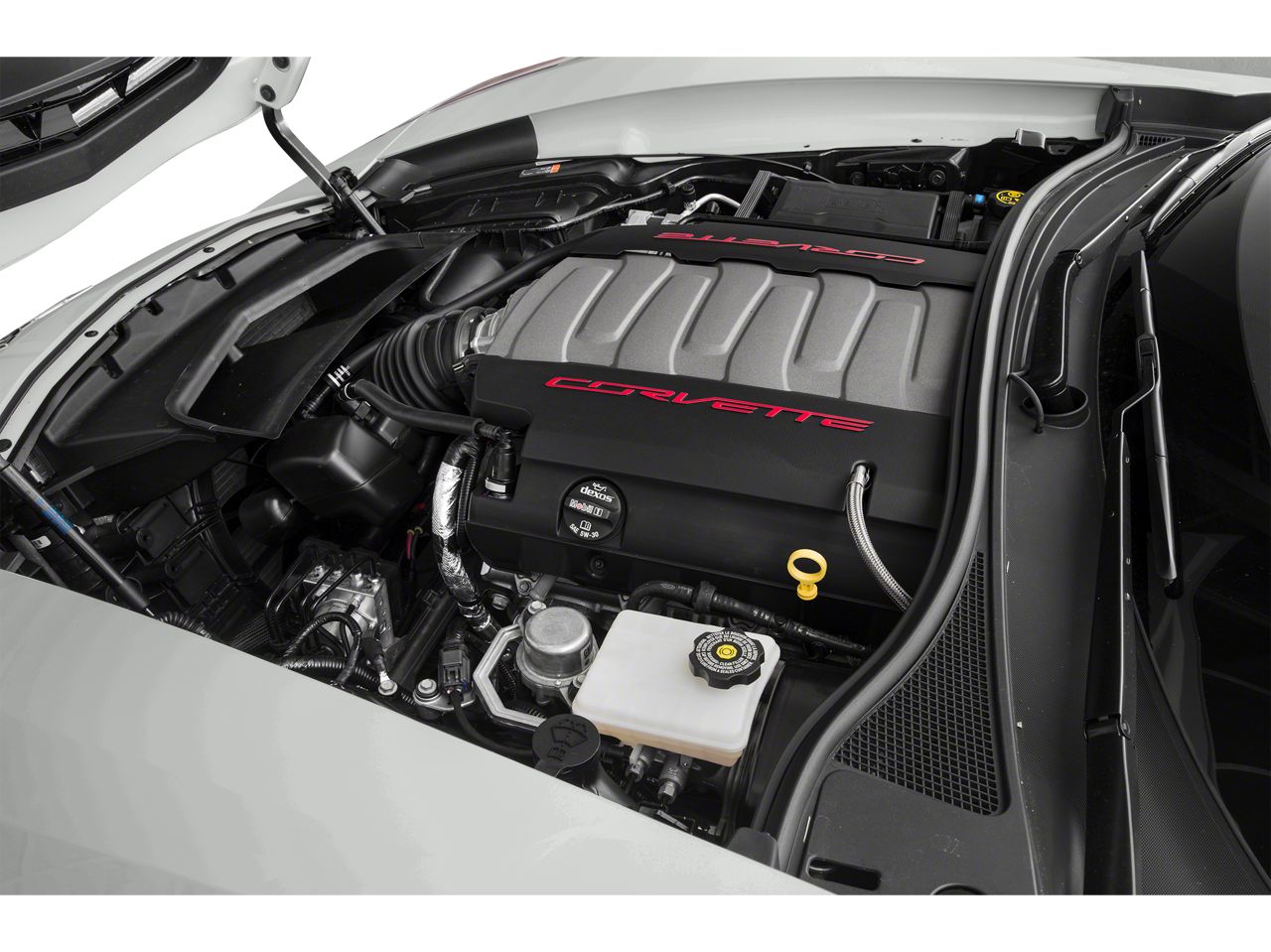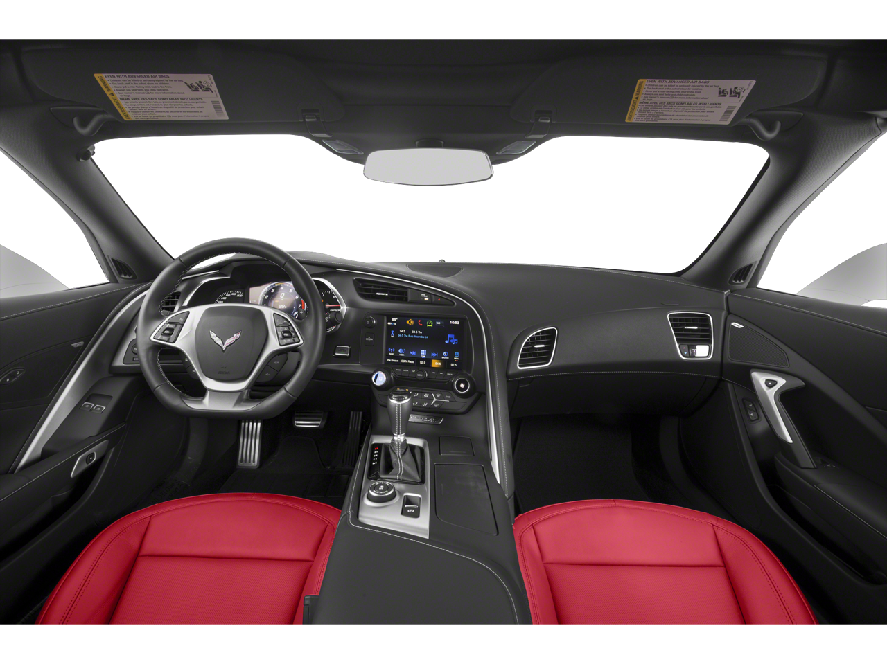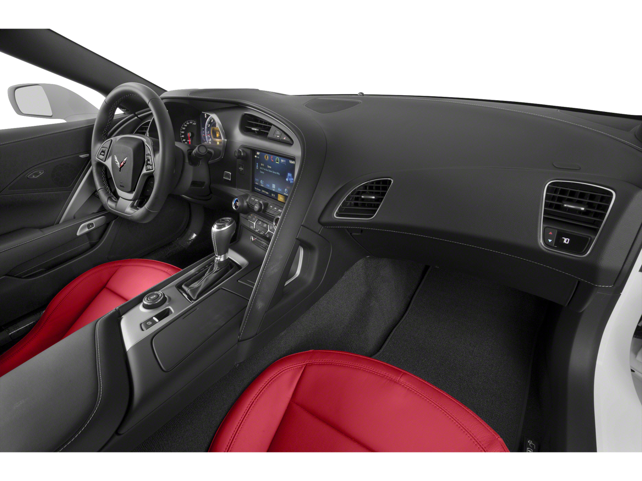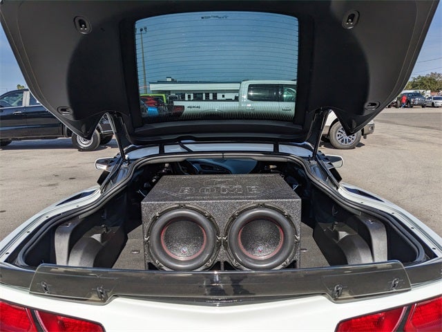 Equipped with Battery Protection Package, Carbon Flash Badge Package, Carbon-Flash Painted Ground Effects Package, Preferred Equipment Group 1LT, 4-Wheel Disc Brakes, 8-Way Driver & Passenger Seat Adjusters, 9 Speakers, ABS brakes, Air Conditioning, Alloy wheels, AM/FM radio: SiriusXM, Apple CarPlay/Android Auto, Automatic temperature control, Bose Premium 9-Speaker Audio System Feature, Bumpers: body-color, Compass, Competition Sport Bucket Seats, Delay-off headlights, Driver door bin, Driver vanity mirror, Dual front impact airbags, Dual front side impact airbags, Electronic Stability Control, Emergency communication system, Exterior Parking Camera Rear, Four wheel independent suspension, Front anti-roll bar, Front Bucket Seats, Front Center Armrest, Front dual zone A/C, Front License Plate Bracket, Front reading lights, Fully automatic headlights, GT Bucket Seats, Heated door mirrors, High-Intensity Discharge Headlights, Illuminated entry, Jake Carbon Flash Met 2-Tone Hood Stinger Stripe, Leather Shift Knob, Leather steering wheel, Low tire pressure warning, Occupant sensing airbag, Outside temperature display, Painted Body-Color Carbon Fiber Removable Roof Panel, Panic alarm, Passenger door bin, Passenger vanity mirror, Performance Exhaust, Power door mirrors, Power driver seat, Power passenger seat, Power steering, Power windows, Premium Carpeted Floor Mats w/Stingray Logo (LPO), Radio data system, Radio: Chevrolet Infotainment System, Rear anti-roll bar, Rear window defroster, Red-Painted Calipers, Remote keyless entry, Speed control, Speed-sensing steering, Spoiler, Sport steering wheel, Steering wheel mounted audio controls, Sueded Microfiber-Wrapped 3-Spoke Steering Wheel, Tachometer, Telescoping steering wheel, Tilt steering wheel, Traction control, Trip computer, Variably intermittent wipers, Voltmeter, Wheels: 19 x 8.5 Fr & 20 x 10 Rr 5-Split Spoke, and Wheels: 19 x 8.5 Fr & 20 x 10 Rr Motorsports. Awards: