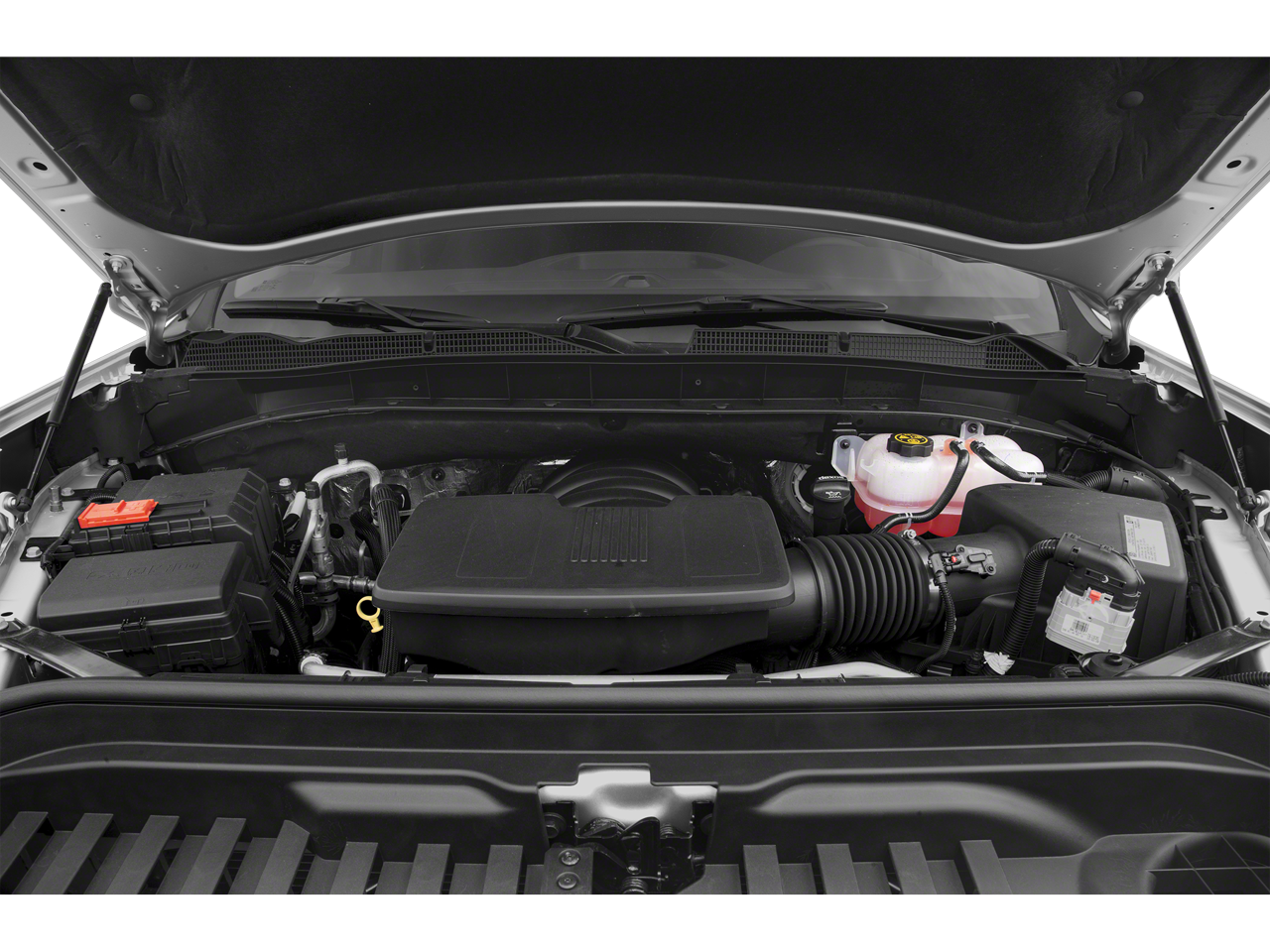 Equipped with Convenience Package (Cruise Control, Deep-Tinted Glass, Electric Rear-Window Defogger, EZ Lift Power Lock & Release Tailgate, Heated Power-Adjustable Outside Mirrors, LED Cargo Area Lighting, and Remote Keyless Entry), Preferred Equipment Group 1SA (170 Amp Alternator, Black (Semi-Gloss) Front Bumper, Black (Semi-Gloss) Rear Bumper, Black Manual Outside Mirrors, Chrome Surround Grille w/Black Mesh, Power Front Windows w/Passenger Express Down, Power Rear Windows w/Express Down, and Solar Absorbing Tinted Glass), 120-Volt Bed Mounted Power Outlet, 120-Volt Instrument Panel Power Outlet, 3.42 Rear Axle Ratio, 4-Way Manual Driver Seat Adjuster, 4-Way Manual Passenger Seat Adjuster, 4-Wheel Disc Brakes, 6 Speakers, 6-Speaker Audio System Feature, ABS brakes, Air Conditioning, AM/FM radio, Apple CarPlay/Android Auto, Brake assist, Delay-off headlights, Driver door bin, Dual front impact airbags, Dual front side impact airbags, Electronic Stability Control, Exterior Parking Camera Rear, Front 40/20/40 Split-Bench Seat, Front anti-roll bar, Front Center Armrest, Front reading lights, Front wheel independent suspension, Fully automatic headlights, Heavy Duty Suspension, Low tire pressure warning, Occupant sensing airbag, Outside temperature display, Overhead airbag, Overhead console, Passenger door bin, Passenger vanity mirror, Power steering, Power windows, Premium audio system: GMC Infotainment System, Radio data system, Radio: GMC Infotainment Audio System, Rear reading lights, Rear step bumper, Speed-sensing steering, Split folding rear seat, Tachometer, Tilt steering wheel, Traction control, Trip computer, Variably intermittent wipers, Vinyl Seat Trim, Voltmeter, and Wheels: 17 x 8 Silver Painted Steel.