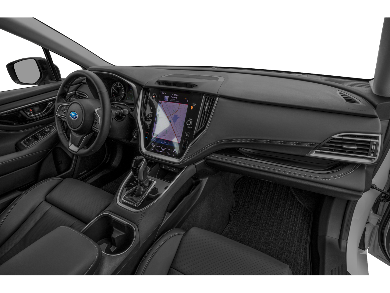 Equipped with Moonroof & Nav & Heated Steering Whl & DriverFocus (Driver Monitoring System (DMS)/DriverFocus, Heated Steering Wheel, Power Moonroof, and Radio: Subaru STARLINK 11.6 Multimedia Nav System), Popular Package #2 (All-Weather Floor Liners, Cargo Tray, Dome Light LED Upgrade, Exterior Auto-Dimming Mirror w/Approach Light, Rear Bumper Applique, and Splash Guards), 12 Speakers, 4-Wheel Disc Brakes, ABS brakes, Air Conditioning, Alloy wheels, AM/FM radio: SiriusXM, Auto High-beam Headlights, Auto-dimming Rear-View mirror, Automatic temperature control, Brake assist, Bumpers: body-color, Compass, Driver door bin, Driver vanity mirror, Dual front impact airbags, Dual front side impact airbags, Electronic Stability Control, Emergency communication system, Exterior Parking Camera Rear, Four wheel independent suspension, Front anti-roll bar, Front Bucket Seats, Front Center Armrest w/Storage, Front dual zone A/C, Front fog lights, Front reading lights, Fully automatic headlights, Garage door transmitter: HomeLink, harman/kardon® Speakers, Heated door mirrors, Heated Front Bucket Seats, Heated front seats, Heated rear seats, Illuminated entry, Knee airbag, Leather Shift Knob, Leather steering wheel, Low tire pressure warning, Memory seat, Occupant sensing airbag, Outside temperature display, Overhead airbag, Overhead console, Panic alarm, Passenger door bin, Passenger vanity mirror, Perforated Leather-Trimmed Upholstery, Power door mirrors, Power driver seat, Power passenger seat, Power steering, Power windows, Radio: Subaru STARLINK 11.6 Multimedia Plus Sys, Rear anti-roll bar, Rear seat center armrest, Rear window defroster, Remote keyless entry, Security system, Speed control, Speed-sensing steering, Split folding rear seat, STARLINK/Apple CarPlay/Android Auto, Steering wheel mounted audio controls, Tachometer, Telescoping steering wheel, Tilt steering wheel, Traction control, Trip computer, Turn signal indicator mirrors, Variably intermittent wipers, and Wheels: 18 x 7.5 Black w/Machine Finish Alloy.