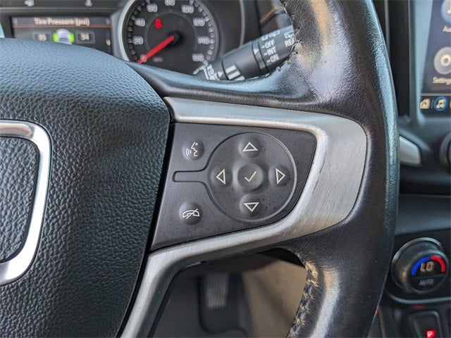Equipped with License Plate Front Mounting Package, Preferred Equipment Group 4SA, 2 USB Data Ports, 2 USB Data Ports w/SD Card Reader, 3.47 Axle Ratio, 4-Wheel Disc Brakes, 6 Speakers, 6-Speaker Audio System Feature, 8-Way Power Driver Seat Adjuster, ABS brakes, Air Conditioning, Alloy wheels, AM/FM radio: SiriusXM, Apple CarPlay/Android Auto, Auto High-beam Headlights, Auto-dimming door mirrors, Auto-dimming Rear-View mirror, Automatic temperature control, Bluetooth® For Phone, Brake assist, Bumpers: body-color, Compass, Delay-off headlights, Driver & Front Passenger Heated Seats, Driver door bin, Driver vanity mirror, Dual front impact airbags, Dual front side impact airbags, Electronic Stability Control, Emergency communication system: OnStar and GMC connected services capable, Exterior Parking Camera Rear, Four wheel independent suspension, Front anti-roll bar, Front Bucket Seats, Front Center Armrest, Front dual zone A/C, Front fog lights, Front reading lights, Fully automatic headlights, Garage door transmitter, Heated door mirrors, Heated front seats, Heated steering wheel, High-Intensity Discharge Headlights, Illuminated entry, Lane Departure Warning System, Low tire pressure warning, Memory seat, Occupant sensing airbag, Outside temperature display, Overhead airbag, Overhead console, Panic alarm, Passenger door bin, Passenger vanity mirror, Perforated Leather-Appointed Seat Trim, Power door mirrors, Power Driver Lumbar Control, Power driver seat, Power Liftgate, Power passenger seat, Power steering, Power windows, Radio data system, Radio: GMC Infotainment Audio System w/8 Display, Rear anti-roll bar, Rear seat center armrest, Rear window defroster, Rear window wiper, Remote keyless entry, Roof rack: rails only, Security system, SiriusXM Radio, Speed control, Speed-sensing steering, Split folding rear seat, Spoiler, Steering wheel mounted audio controls, Tachometer, Telescoping steering wheel, Tilt steering wheel, Traction control, Trip computer, Turn signal indicator mirrors, Variably intermittent wipers, Wheels: 18 x 7 Machined Aluminum w/Gray Accents, and Wheels: 19 x 7.5 Machined Aluminum w/Gray Accents.