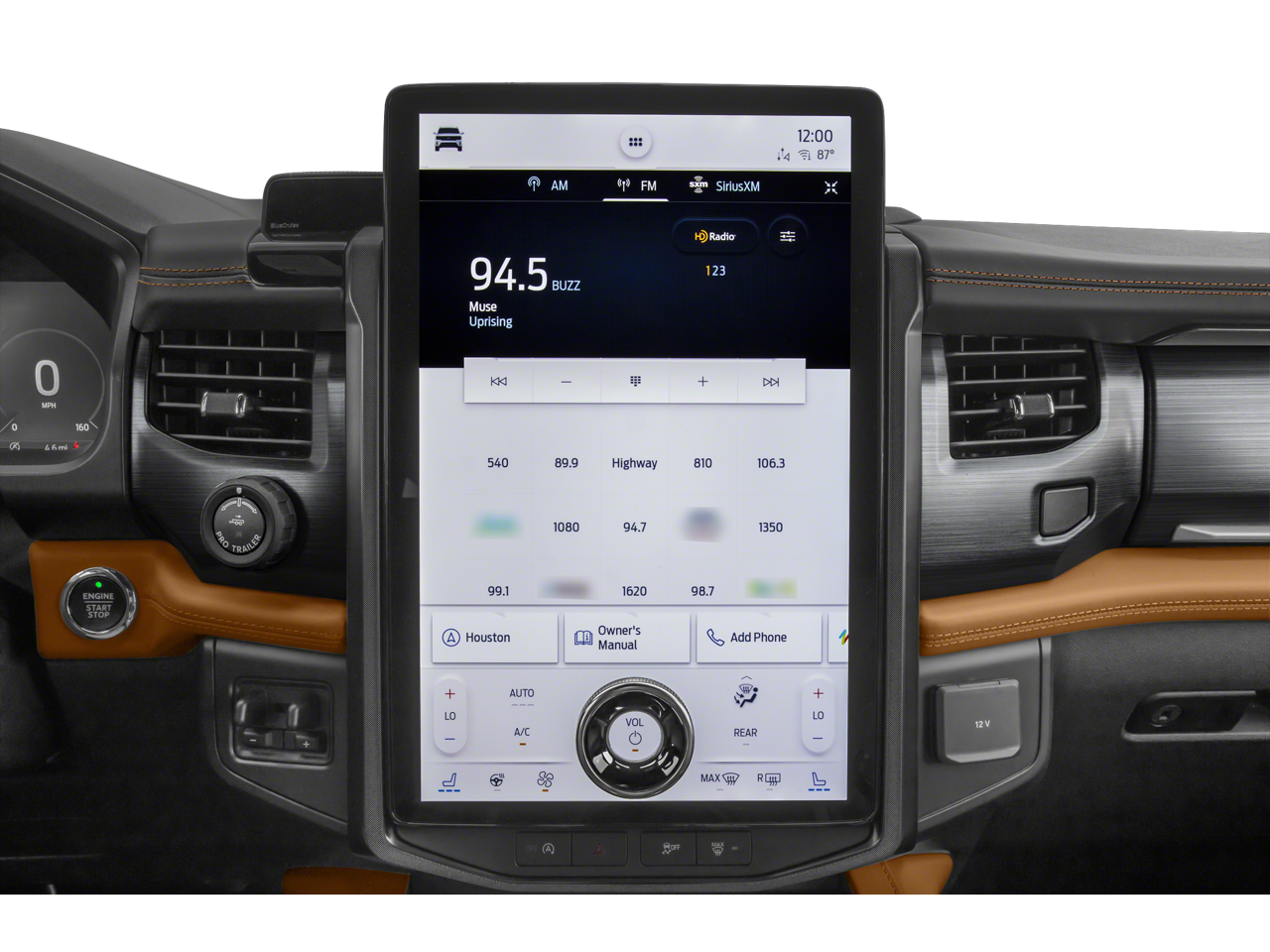 Equipped with Equipment Group 600A Standard Package, 22 Speakers, 3rd row seats: split-bench, 4-Wheel Disc Brakes, ABS brakes, Active Park Assist 2.0 Removal, Adaptive suspension, Adjustable pedals, Air Conditioning, Alloy wheels, AM/FM radio: SiriusXM with 360L, Auto High-beam Headlights, Auto-dimming door mirrors, Auto-dimming Rear-View mirror, Automatic temperature control, Brake assist, Bumpers: body-color, Compass, Continuous Controlled Damping (CCD), Delay-off headlights, Driver door bin, Driver vanity mirror, Dual front impact airbags, Dual front side impact airbags, Electronic Stability Control, Emergency communication system: SYNC 4 911 Assist, Exterior Parking Camera Rear, Four wheel independent suspension, Front anti-roll bar, Front Bucket Seats, Front Center Armrest, Front dual zone A/C, Front fog lights, Front reading lights, Fully automatic headlights, Garage door transmitter, Genuine wood console insert, Genuine wood dashboard insert, Genuine wood door panel insert, Hands-Free Foot-Activated Feature Removal, Heated door mirrors, Heated front seats, Heated rear seats, Heated steering wheel, Heated/Ventilated Leather Front Captain's Chairs, Illuminated entry, Leather steering wheel, Low tire pressure warning, Memory seat, Navigation system: Connected Navigation, Occupant sensing airbag, Outside temperature display, Overhead airbag, Overhead console, Panic alarm, Passenger door bin, Passenger vanity mirror, Pedal memory, Power door mirrors, Power driver seat, Power Liftgate, Power moonroof, Power passenger seat, Power steering, Power windows, Radio data system, Radio: B&O Unleashed Sound System by Bang & Olufsen, Rain sensing wipers, Rear air conditioning, Rear anti-roll bar, Rear audio controls, Rear reading lights, Rear window defroster, Rear window wiper, Reclining 3rd row seat, Remote keyless entry, Second Row Power Windows Removal, Security system, SiriusXM w/360L, Speed control, Speed-sensing steering, Speed-Sensitive Wipers, Split folding rear seat, Spoiler, Std Lux Lth Trim Fr Seats w/Multi-Contour Seat Del, Steering wheel memory, Steering wheel mounted audio controls, SYNC 4 w/Enhanced Voice Recognition, Tachometer, Telescoping steering wheel, Tilt steering wheel, Traction control, Trip computer, Turn signal indicator mirrors, Variably intermittent wipers, Ventilated front seats, Voltmeter, and Wheels: 22 12-Spoke Polished Aluminum.