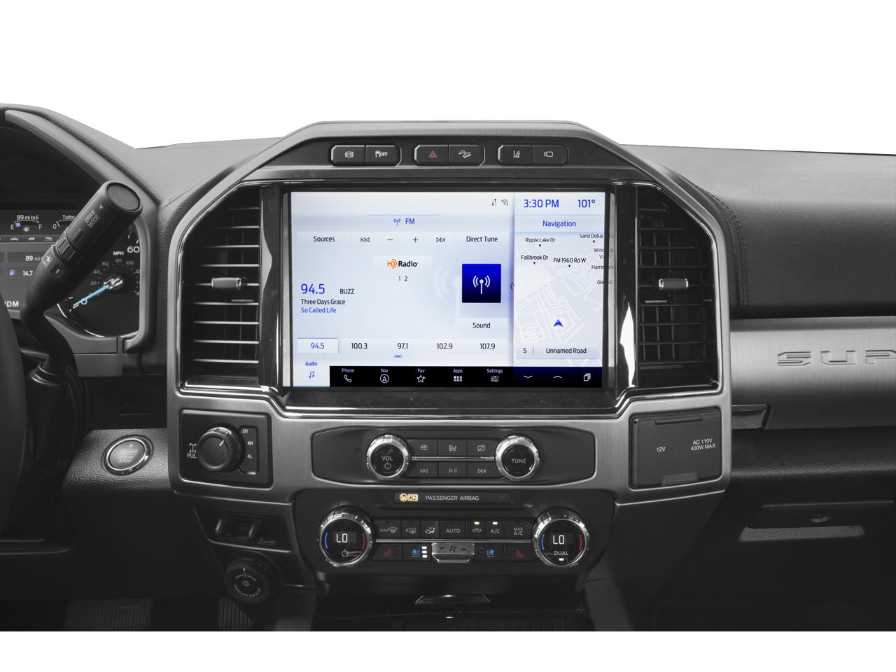 Equipped with GVWR: 10,000 lb Payload Package, Pro Trailer Backup Assist - High Capacity (Lane Departure Warning System and Ultimate Trailer Tow Camera System), 10 Speakers, 4-Wheel Disc Brakes, ABS brakes, Adjustable pedals, Advanced Security Pack Inclination Sensor Removal, Air Conditioning, Alloy wheels, AM/FM radio: SiriusXM with 360L, Auto High-beam Headlights, Auto-dimming Rear-View mirror, Automatic temperature control, Brake assist, Compass, Delay-off headlights, Driver door bin, Driver vanity mirror, Dual front impact airbags, Dual front side impact airbags, Electronic Stability Control, Emergency communication system: SYNC 4 911 Assist, Exterior Parking Camera Rear, Flow-Through Console, Front anti-roll bar, Front Bucket Seats, Front Center Armrest, Front dual zone A/C, Front fog lights, Front reading lights, Fully automatic headlights, Heated door mirrors, Illuminated entry, Leather steering wheel, LED Roof Clearance Lights, Low tire pressure warning, Navigation system: Connected Navigation, Outside temperature display, Overhead airbag, Overhead console, Panic alarm, Passenger door bin, Passenger vanity mirror, Power door mirrors, Power driver seat, Power passenger seat, Power steering, Power windows, Radio data system, Radio: B&O Sound System by Bang & Olufsen, Rear Parking Sensors, Rear reading lights, Rear seat center armrest, Rear step bumper, Rear window defroster, Remote keyless entry, Security system, SiriusXM Radio w/360L, Speed control, Split folding rear seat, Steering wheel mounted audio controls, SYNC 4 w/Enhanced Voice Recognition, Tachometer, Telescoping steering wheel, Tilt steering wheel, Traction control, Trip computer, Turn signal indicator mirrors, Twin Panel Power Moonroof, and Variably intermittent wipers.