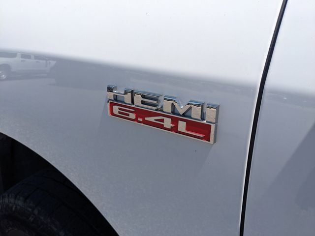 Equipped with Chrome Appearance Group (Bright Front Bumper, Bright Rear Bumper, Center Hub, Chrome Grille Surround, Matte Black Mesh Grille w/Chrome, and Wheels: 18 x 8.0 Steel Chrome Clad), Protection Group, Quick Order Package 2GA Tradesman, 115V Auxiliary Front Power Outlet, 17 x 7.5 Steel Styled Wheels, 2 Way Rear Headrest Seat, 3.73 Axle Ratio, 4 Way Front Headrests, 4-Wheel Disc Brakes, 40/20/40 Split Bench Seat, 400W Inverter, 4G LTE Wi-Fi Hot Spot, 6 Speakers, 8.4 Touchscreen Display, ABS brakes, Active Noise Control System, Air Conditioning, All R1 Low Radios, All Radio Equipped Vehicles, AM/FM radio, Anti-Spin Differential Rear Axle, Apple CarPlay, Black Exterior Mirrors, Bluetooth® Handsfree Phone & Audio, Brake assist, Bulb Out Detection Defeat for LED, Cluster 3.5 TFT Color Display, Compass, Connectivity - US/Canada, Dash Pass Thru Wire Circuits, Delay-off headlights, Delete Pickup Box (DISC), Driver door bin, Dual front impact airbags, Dual front side impact airbags, Electric Shift-On-The-Fly Transfer Case, Electronic Stability Control, Electronically Controlled Throttle, Emergency communication system: SiriusXM Guardian, Exterior 115V AC Outlet, Exterior Mirrors Courtesy Lamps, Exterior Mirrors w/Heating Element, Exterior Mirrors w/Supplemental Signals, For Details, Visit DriveUconnect.com, Front anti-roll bar, Front Center Armrest w/Storage, Front License Plate Bracket, Front reading lights, Fully automatic headlights, Global Telematics Box Module (TBM), Google Android Auto, GPS Antenna Input, Heated door mirrors, Heavy Duty Vinyl 40/20/40 Split Bench Seat, I/P Mounted Auxiliary Switches, Illuminated entry, Integrated Center Stack Radio, Integrated Voice Command w/Bluetooth®, Low tire pressure warning, Manual Adjust 4-Way Driver Seat, Mirror Running Lights, Occupant sensing airbag, Outside temperature display, Overhead airbag, Overhead console, ParkView Rear Back-Up Camera, Passenger door bin, Passenger vanity mirror, Power Adjust & Heated Black Tow Mirrors, Power door mirrors, Power steering, Power windows, Radio data system, Radio: Uconnect 3 w/5 Display, Radio: Uconnect 5 W w/8.4 Display, Rear anti-roll bar, Rear Folding Seat, Rear step bumper, Selectable Tire Fill Alert, SiriusXM Radio Service, SiriusXM Satellite Radio, Speed control, Storage Tray, Tachometer, Tilt steering wheel, Tip Start, Tow Hooks, Traction control, Trailer Brake Control, Trailer Light Check, Trailer Tow Mirrors, Variably intermittent wipers, Voltmeter, and Wheels: 18 x 8.0 SteeL.