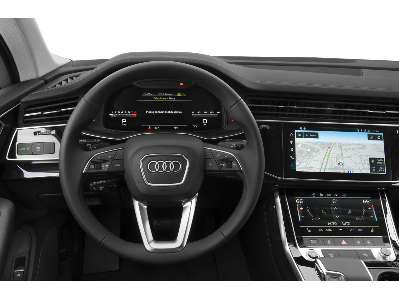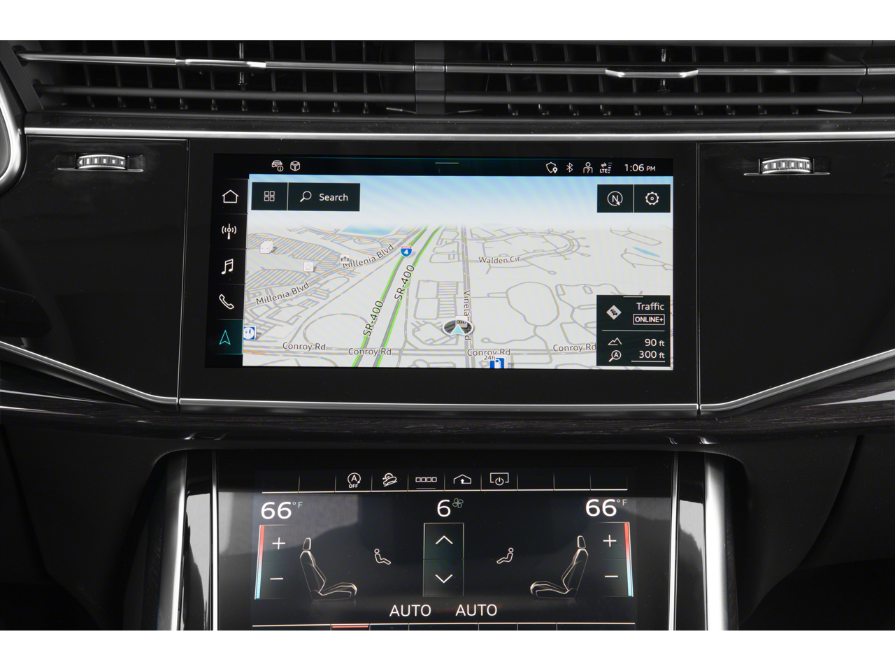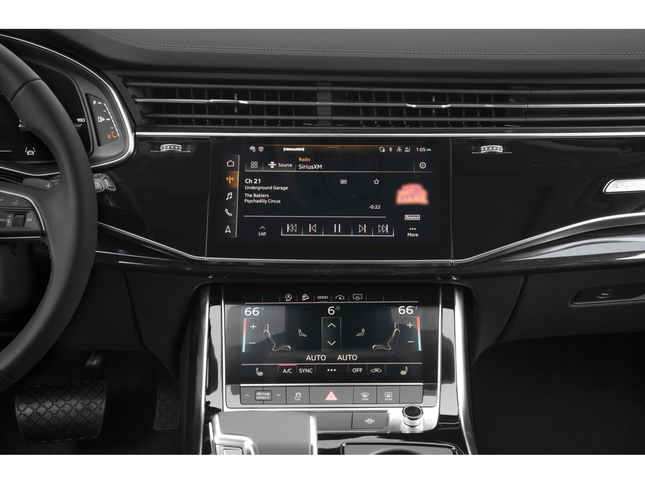 Equipped with 10 Speakers, 3.204 Axle Ratio, 3rd row seats: bench, 4-Wheel Disc Brakes, ABS brakes, Air Conditioning, Alloy wheels, AM/FM radio: SiriusXM w/ 360L, Auto High-beam Headlights, Auto-dimming door mirrors, Auto-dimming Rear-View mirror, Automatic temperature control, Brake assist, Bumpers: body-color, Compass, Delay-off headlights, Driver door bin, Driver vanity mirror, Dual front impact airbags, Dual front side impact airbags, Electronic Stability Control, Emergency communication system: Audi connect CARE, Exterior Parking Camera Rear, Four wheel independent suspension, Front anti-roll bar, Front Bucket Seats, Front Center Armrest, Front dual zone A/C, Front fog lights, Front reading lights, Fully automatic headlights, Garage door transmitter: HomeLink, Genuine wood door panel insert, Heated door mirrors, Heated Front Bucket Seats, Heated front seats, Illuminated entry, Leather Seating Surfaces, Leather Shift Knob, Leather steering wheel, Low tire pressure warning, Memory seat, Navigation system: Audi MMI Navigation plus with Touch Response, Occupant sensing airbag, Outside temperature display, Overhead airbag, Overhead console, Panic alarm, Passenger door bin, Passenger vanity mirror, Power door mirrors, Power driver seat, Power Liftgate, Power moonroof: Panoramic, Power passenger seat, Power steering, Power windows, Radio data system, Radio: Audi Sound System, Rain sensing wipers, Rear air conditioning, Rear anti-roll bar, Rear fog lights, Rear reading lights, Rear seat center armrest, Rear side impact airbag, Rear window defroster, Rear window wiper, Reclining 3rd row seat, Remote keyless entry, Roof rack: rails only, Security system, Speed control, Speed-sensing steering, Split folding rear seat, Spoiler, Steering wheel memory, Steering wheel mounted audio controls, Tachometer, Telescoping steering wheel, Tilt steering wheel, Traction control, Trip computer, Turn signal indicator mirrors, Variably intermittent wipers, and Wheels: 19 5-Arm-Star Design.