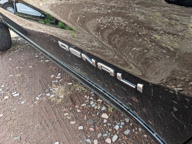 Equipped with Preferred Equipment Group 5SA (120-Volt Bed Mounted Power Outlet, 120-Volt Instrument Panel Power Outlet, 170 Amp Alternator, 2 Charge/Data USB Ports Inside Center Console, 2 Type-C Charge-Only Rear USB Ports, 2 USB Ports, Auto-Locking Rear Differential, Auxiliary External Transmission Oil Cooler, Bed View Camera, Chrome Header w/Signature Denali Chrome Grille, Chrome Recovery Hooks, Chrome Wheel To Wheel Assist Steps, Color-Keyed Carpeting Floor Covering, Compass, Deep-Tinted Glass, Electric Rear-Window Defogger, Electrical Steering Column Lock, Floor-Mounted Center Console, Front Rainsensing Wipers, GMC Connected Access Capable, HD Surround Vision, Heated 2nd Row Outboard Seats, Heated Driver & Front Outboard Passenger Seating, Heavy-Duty Air Filter, Hill Descent Control, Hitch Guidance w/Hitch View, In-Vehicle Trailering App, Integrated Trailer Brake Controller, Keyless Open & Start, LED Cargo Area Lighting, OnStar & GMC Connected Services Capable, Perimeter Lighting, Power Door Locks, Power Front Passenger Windows w/Express Up/Down, Power Front Windows w/Driver Express Up/Down, Power Rake & Telescoping Steering Column, Power Rear Windows w/Express Down, Power Sliding Rear Window w/Rear Defogger, Premium Bose 7-Speaker Sound System, Push Button Start, Rear Cross Traffic Braking, Rear Pedestrian Detection, Rear Wheelhouse Liners, Remote Vehicle Starter System, SiriusXM w/360L, Spray-On Pickup Bed Liner w/Denali Logo, Steering Wheel Audio Controls, Theft Deterrent System (Unauthorized Entry), Trailer Camera Provisions, Trailer Side Blind Zone Alert, Ultrasonic Front & Rear Park Assist, Universal Home Remote, Ventilated Driver & Front Passenger Seats, Wi-Fi Hotspot Capable, Wireless Charging, and Wireless Phone Projection), Technology Package (Adaptive Cruise Control, Multicolor 15 Diagonal Head-Up Display, and Rear Camera Mirror), Trailering Package (Hitch Guidance), 10-Way Power Driver Seat Adjuster w/Lumbar, 10-Way Power Passenger Seat Adjuster w/Lumbar, 3.23 Rear Axle Ratio, 4-Wheel Disc Brakes, 7 Speakers, ABS brakes, Adaptive suspension, Air Conditioning, Alloy wheels, AM/FM radio, Apple CarPlay/Android Auto, Auto High-beam Headlights, Auto-dimming door mirrors, Auto-dimming Rear-View mirror, Automatic Emergency Braking, Automatic temperature control, Brake assist, Buckle to Drive, Bumpers: body-color, Delay-off headlights, Denali Premium Suspension w/Adaptive Ride Control, Driver door bin, Driver Memory, Driver vanity mirror, Dual front impact airbags, Dual front side impact airbags, Electronic Stability Control, Emergency communication system: OnStar and GMC connected services capable, Following Distance Indicator, Forge Perforated Leather Seat Trim, Forward Collision Alert, Front anti-roll bar, Front Bucket Seats, Front Center Armrest, Front dual zone A/C, Front fog lights, Front License Plate Kit, Front Pedestrian Braking, Front reading lights, Front wheel independent suspension, Fully automatic headlights, Garage door transmitter, Genuine wood console insert, Genuine wood dashboard insert, Genuine wood door panel insert, Heated door mirrors, Heated front seats, Heated rear seats, Heated steering wheel, Illuminated entry, IntelliBeam Automatic High Beam On/Off, Lane Keep Assist w/Lane Departure Warning, Low tire pressure warning, Memory seat, Navigation System, Not Equipped w/Steering Column Lock, Occupant sensing airbag, Outside temperature display, Overhead airbag, Overhead console, Panic alarm, Passenger door bin, Passenger vanity mirror, Power door mirrors, Power driver seat, Power passenger seat, Power steering, Power windows, Premium audio system: GMC Infotainment System, Radio data system, Radio: Premium GMC Infotainment Audio System, Rain sensing wipers, Rear reading lights, Rear seat center armrest, Rear step bumper, Rear window defroster, Remote keyless entry, Safety Alert Seat, Security system, Speed control, Speed-sensing steering, S