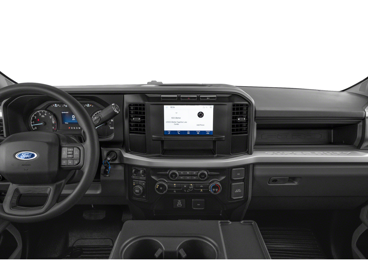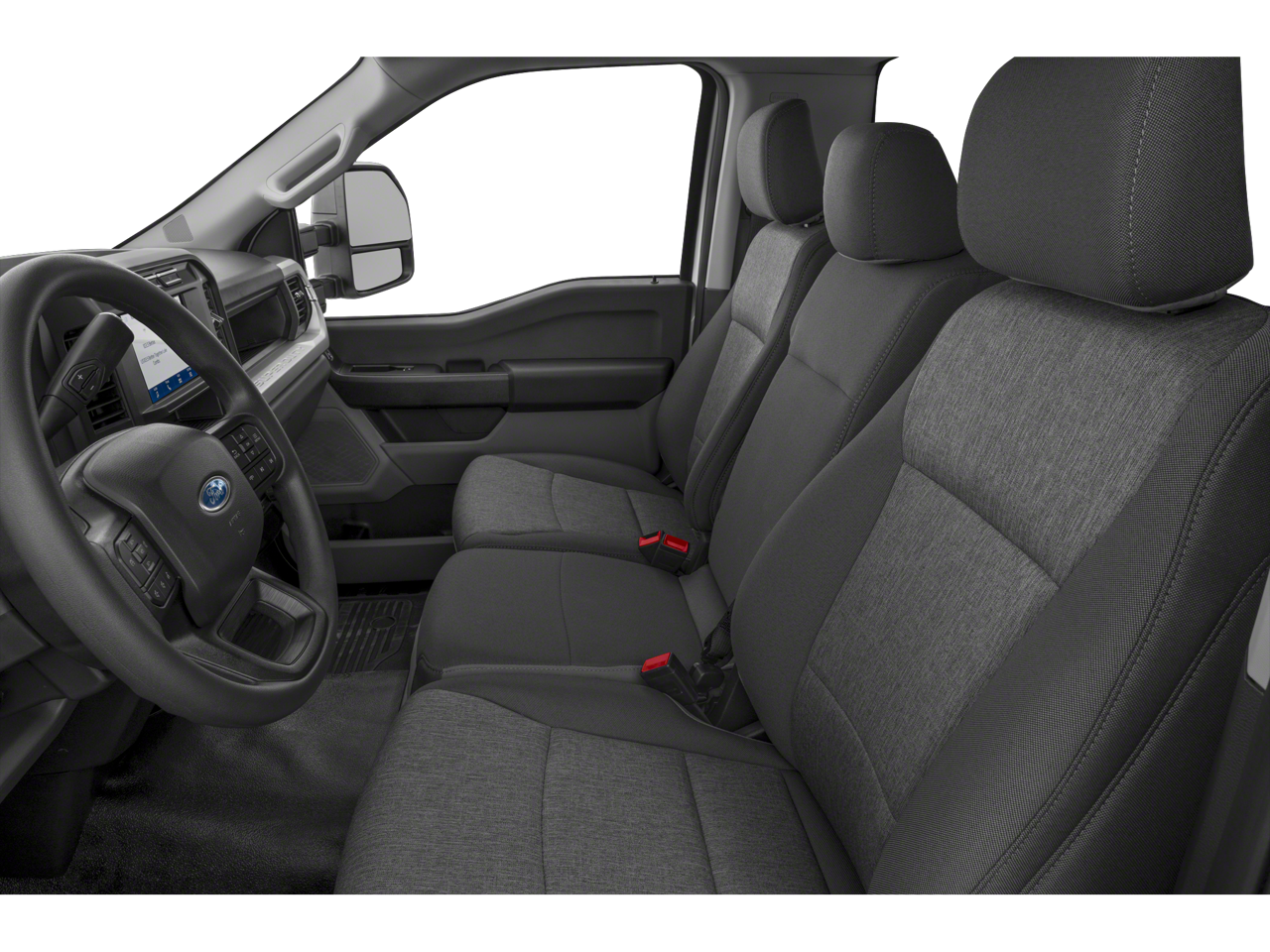 Equipped with GVWR: 10,900 lb Payload Package, 190 Amp Alternator, 4 Speakers, 4-Wheel Disc Brakes, ABS brakes, Air Conditioning, AM/FM radio, AM/FM Stereo w/MP3 Player, Brake assist, Cloth 40/20/40 Split Bench Seat, Compass, Delay-off headlights, Dual front impact airbags, Dual front side impact airbags, Electronic Stability Control, Emergency communication system: SYNC 4 911 Assist, Exterior Backup Alarm (Pre-Installed), Exterior Parking Camera Rear, Front anti-roll bar, Front Center Armrest w/Storage, Front reading lights, Fully automatic headlights, Heated door mirrors, Illuminated entry, Interior Work Surface, Low tire pressure warning, Outside temperature display, Overhead airbag, Overhead console, Panic alarm, Passenger cancellable airbag, Passenger vanity mirror, Platform Running Boards, Power door mirrors, Power steering, Power windows, Rear step bumper, Remote keyless entry, Speed control, Steering wheel mounted audio controls, SYNC 4, Tachometer, Telescoping steering wheel, Tilt steering wheel, Traction control, Trip computer, Turn signal indicator mirrors, and Variably intermittent wipers.