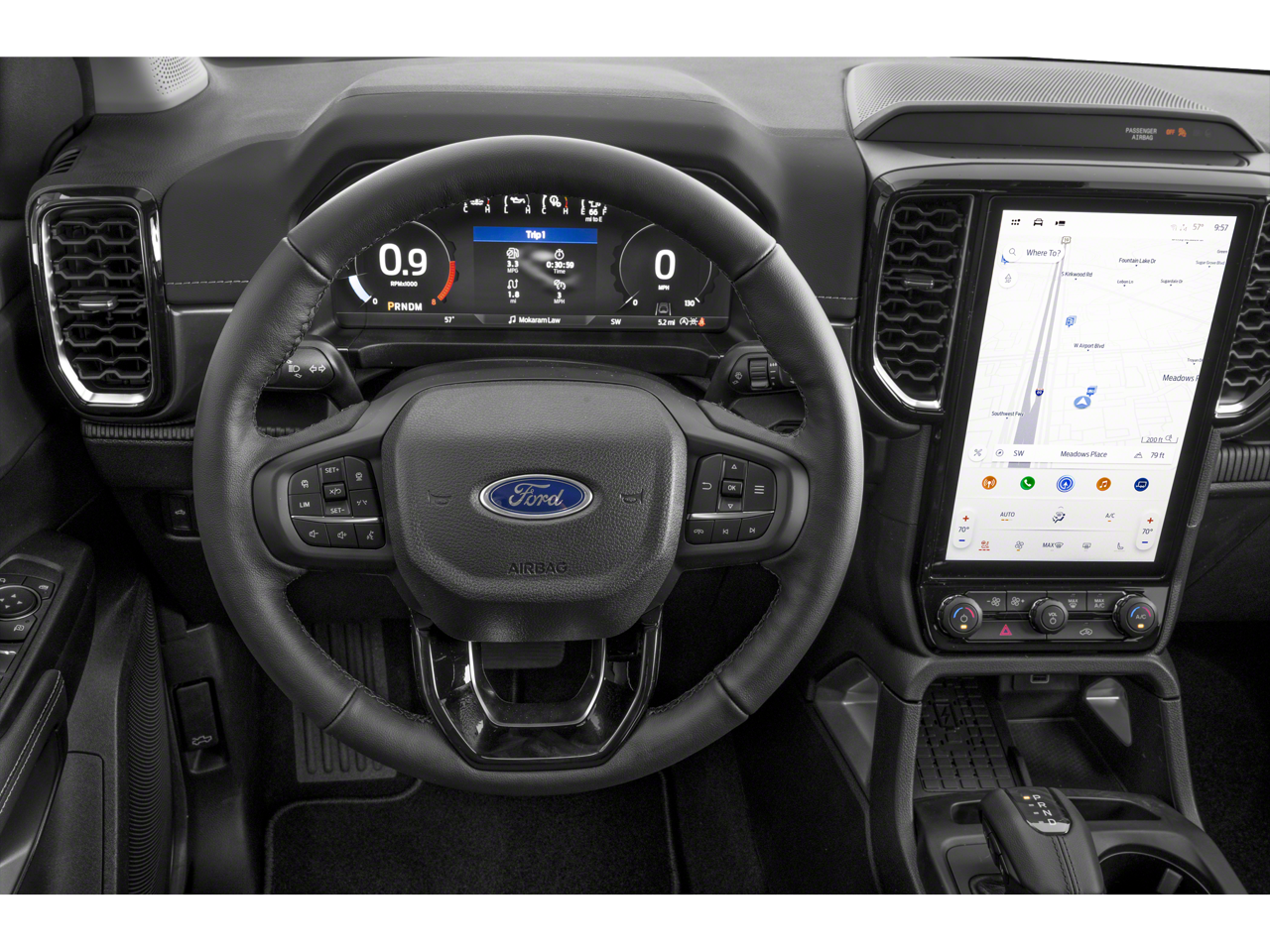Equipped with Equipment Group 500A Standard, Sport Appearance Package (Gray Painted Center Bar & Grille Surround, Gray Painted Front Fascia & Rear Bumper, Gray Painted Wheel Lip Molding, and Sport Box Decal), 10 Speakers, 3.73 Axle Ratio, 4-Wheel Disc Brakes, ABS brakes, Air Conditioning, Alloy wheels, AM/FM radio: SiriusXM, Auto High-beam Headlights, Auto-dimming Rear-View mirror, Automatic temperature control, Black Running Boards, Brake assist, Compass, Delay-off headlights, Driver door bin, Driver vanity mirror, Dual front impact airbags, Dual front side impact airbags, Electronic Stability Control, Emergency communication system: SYNC 4 911 Assist, Exterior Parking Camera Rear, Front anti-roll bar, Front Bucket Seats, Front Center Armrest, Front dual zone A/C, Front fog lights, Front reading lights, Front wheel independent suspension, Fully automatic headlights, Garage door transmitter, Heated door mirrors, Heated front seats, Heated steering wheel, Illuminated entry, Leather Shift Knob, Leather steering wheel, Leather-Trimmed Front Heated Bucket Seats, Low tire pressure warning, Memory seat, Navigation system: Connected Navigation, Occupant sensing airbag, Outside temperature display, Overhead airbag, Overhead console, Panic alarm, Passenger door bin, Passenger vanity mirror, Power door mirrors, Power driver seat, Power passenger seat, Power steering, Power windows, Radio: B&O Sound System by Bang & Olufsen, Rain sensing wipers, Rear reading lights, Rear seat center armrest, Rear step bumper, Rear window defroster, Remote keyless entry, Security system, SiriusXM Satellite Radio, Speed control, Speed-sensing steering, Steering wheel mounted audio controls, SYNC 4A w/Connected Built-In Navigation, Telescoping steering wheel, Tilt steering wheel, Tough Bed Spray-In Bedliner, Traction control, Tray Style Floor Liner, Trip computer, Turn signal indicator mirrors, Variably intermittent wipers, Voltmeter, and Wheels: 18 Machined Aluminum w/Dark Pockets.