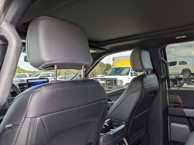 Equipped with Equipment Group 511A Standard, Max Trailer Tow Package (E-Locker, Hill Decent Control, and Trailer Brake Controller), 4-Wheel Disc Brakes, 8 Speakers, ABS brakes, ActiveX Trimmed Heated & Ventilated Seats, Adjustable pedals, Air Conditioning, Alloy wheels, Auto High-beam Headlights, Auto tilt-away steering wheel, Auto-dimming door mirrors, Auto-dimming Rear-View mirror, Automatic temperature control, BlueCruise Equipped (1-Year Plan), Brake assist, Bumpers: body-color, Compass, Delay-off headlights, Driver door bin, Driver vanity mirror, Dual front impact airbags, Dual front side impact airbags, Electronic Stability Control, Emergency communication system: SYNC 4 911 Assist, Four wheel independent suspension, Front anti-roll bar, Front Bucket Seats, Front Center Armrest, Front dual zone A/C, Front reading lights, Fully automatic headlights, Heated door mirrors, Heated front seats, Heated rear seats, Heated steering wheel, Illuminated entry, Illuminated running boards, Internet access capable: FordPass Connect 4G, Knee airbag, Low tire pressure warning, Memory seat, Mobile Power Cord (120/240V), Navigation system: Connected Navigation, Occupant sensing airbag, Outside temperature display, Overhead airbag, Overhead console, Panic alarm, Passenger door bin, Passenger vanity mirror, Pedal memory, Power door mirrors, Power driver seat, Power moonroof, Power passenger seat, Power steering, Power windows, Radio data system, Radio: B&O Sound System by Bang & Olufsen, Rain sensing wipers, Rear anti-roll bar, Rear reading lights, Rear seat center armrest, Rear step bumper, Rear window defroster, Remote keyless entry, Security system, Soft Folding Tonneau Pickup Box Cover, Speed control, Speed-sensing steering, Split folding rear seat, Steering wheel memory, Steering wheel mounted audio controls, SYNC 4A w/Enhanced Voice Recognition, Telescoping steering wheel, Tilt steering wheel, Tough Bed Spray-In Bedliner, Traction control, Tray Style Floor Liner w/o Carpet Mats, Trip computer, Turn signal indicator mirrors, Variably intermittent wipers, Ventilated front seats, and Wheels: 20 Alloy Dark Carbonized Gray.