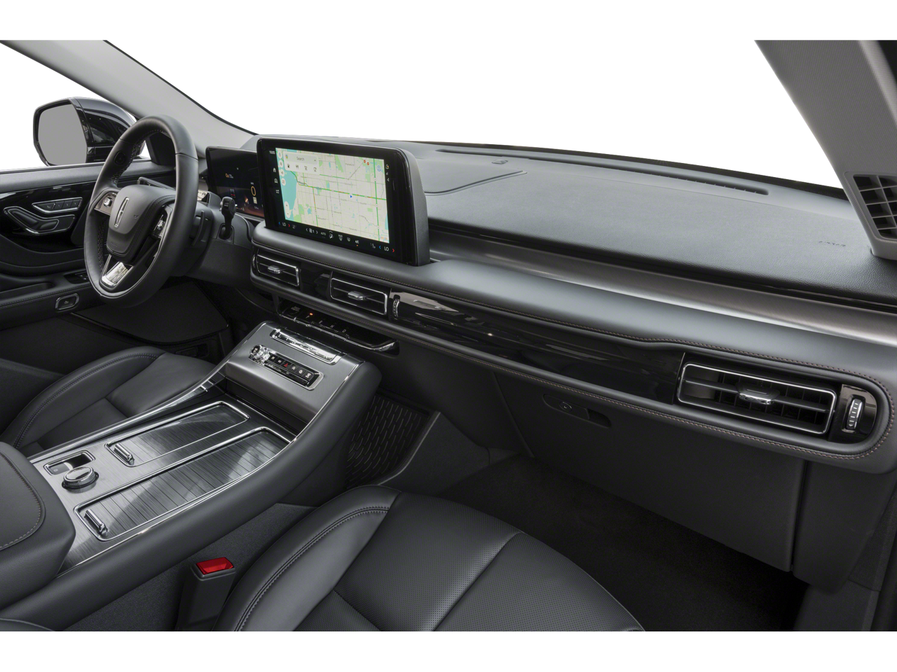 Equipped with Equipment Group 100A (Auto Air Refresh, Lincoln BlueCruise Equipped (4-Years Included), and Wireless Charging), 10 Speakers, 3rd row seats: split-bench, 4-Wheel Disc Brakes, ABS brakes, Adaptive suspension, Air Conditioning, All-Weather 1st & 2nd Row Floor Liners (16A), Alloy wheels, AM/FM radio: SiriusXM, Apple CarPlay/Android Auto, Audio memory, Auto High-beam Headlights, Auto-dimming door mirrors, Auto-dimming Rear-View mirror, Automatic temperature control, Brake assist, Bumpers: body-color, Compass, Delay-off headlights, Driver door bin, Driver vanity mirror, Dual front impact airbags, Dual front side impact airbags, Electronic Stability Control, Emergency communication system: 911 Assist, Four wheel independent suspension, Front anti-roll bar, Front Bucket Seats, Front Center Armrest, Front dual zone A/C, Front reading lights, Fully automatic headlights, Garage door transmitter, Heated door mirrors, Heated front seats, Heated steering wheel, HVAC memory, Illuminated entry, Knee airbag, Leather steering wheel, Lincoln Digital Experience, Lincoln Soft Touch Heated/Ventilated Comfort Seats, Low tire pressure warning, Memory seat, Navigation system: Connected Navigation (1-year trial), Occupant sensing airbag, Outside temperature display, Overhead airbag, Overhead console, Panic alarm, Passenger door bin, Passenger vanity mirror, Power door mirrors, Power driver seat, Power Liftgate, Power moonroof: Panoramic Vista Roof, Power passenger seat, Power steering, Power windows, Radio data system, Radio: Lincoln Premium AM/FM/HD Audio System, Rain sensing wipers, Rear air conditioning, Rear anti-roll bar, Rear audio controls, Rear reading lights, Rear window defroster, Rear window wiper, Remote keyless entry, Security system, SiriusXM, Speed control, Speed-Sensitive Wipers, Split folding rear seat, Spoiler, Steering wheel memory, Steering wheel mounted A/C controls, Steering wheel mounted audio controls, Tachometer, Telescoping steering wheel, Tilt steering wheel, Traction control, Trip computer, Turn signal indicator mirrors, Variably intermittent wipers, Ventilated front seats, Wheels: 20 Magnetic Bright-Machined Aluminum, and Wheels: 21 Bright Machined Aluminum.