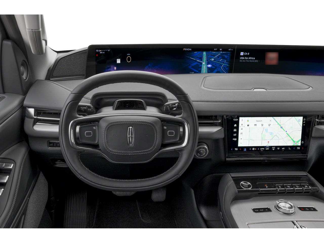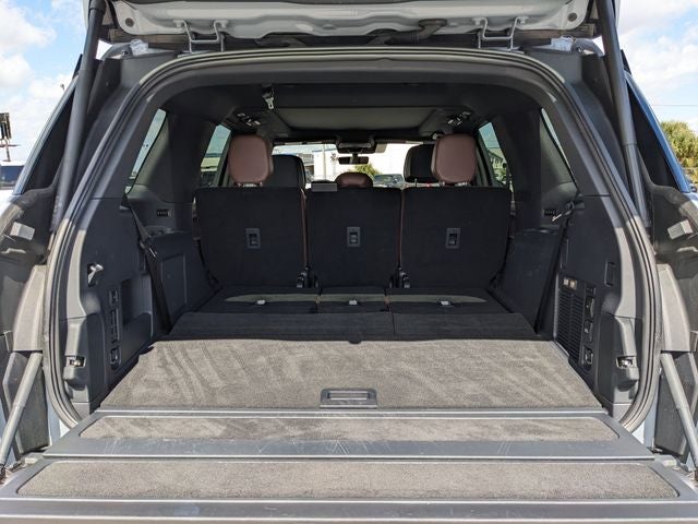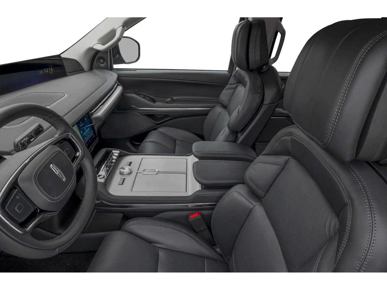 Equipped with Equipment Group 202A Reserve II, 28 Speakers, 2nd Row Heated 40/20/40 Split Bench Seat, 3rd row seats: split-bench, 4-Wheel Disc Brakes, ABS brakes, Adaptive suspension, Adjustable pedals, Air Conditioning, All-Weather Flr Liners w/o Fr & Rr Carpet Flr Mats, Alloy wheels, AM/FM radio: SiriusXM with 360L, Apple CarPlay/Android Auto, Audio memory, Auto High-beam Headlights, Auto Htd & Ventilated Premium Lthr Captain's Chair, Auto Start-Stop Technology, Auto tilt-away steering wheel, Auto-dimming door mirrors, Auto-dimming Rear-View mirror, Auto-leveling suspension, Automatic temperature control, Brake assist, Bumpers: body-color, Compass, Delay-off headlights, Driver door bin, Driver vanity mirror, Driver's Seat Mounted Armrest, Dual front impact airbags, Dual front side impact airbags, Electronic Stability Control, Emergency communication system: 911 Assist, Exterior Parking Camera Rear, Four wheel independent suspension, Front anti-roll bar, Front Bucket Seats, Front dual zone A/C, Front reading lights, Fully automatic headlights, Garage door transmitter, Heated door mirrors, Heated front seats, Heated rear seats, Heated steering wheel, HVAC memory, Illuminated entry, Leather steering wheel, Lincoln Connect, Lincoln Premium Connectivity, Low tire pressure warning, Memory seat, Navigation system: Connected Navigation (1-year trial), Occupant sensing airbag, Outside temperature display, Overhead airbag, Overhead console, Panic alarm, Passenger door bin, Passenger seat mounted armrest, Passenger vanity mirror, Pedal memory, Power adjustable rear head restraints, Power door mirrors, Power driver seat, Power moonroof: Panoramic Vista Roof, Power passenger seat, Power steering, Power windows, Radio data system, Radio: Revel Ultima 3D AM/FM/HD Audio System, Rain sensing wipers, Rear air conditioning, Rear anti-roll bar, Rear audio controls, Rear reading lights, Rear window defroster, Rear window wiper, Reclining 3rd row seat, Remote keyless entry, Security system, SiriusXM w/360L, Speed control, Speed-sensing steering, Speed-Sensitive Wipers, Split folding rear seat, Spoiler, Steering wheel memory, Steering wheel mounted audio controls, Tachometer, Telescoping steering wheel, Tilt steering wheel, Traction control, Trip computer, Turn signal indicator mirrors, Variably intermittent wipers, Ventilated front seats, and Wheels: 22 Dark Tarnished Aluminum.