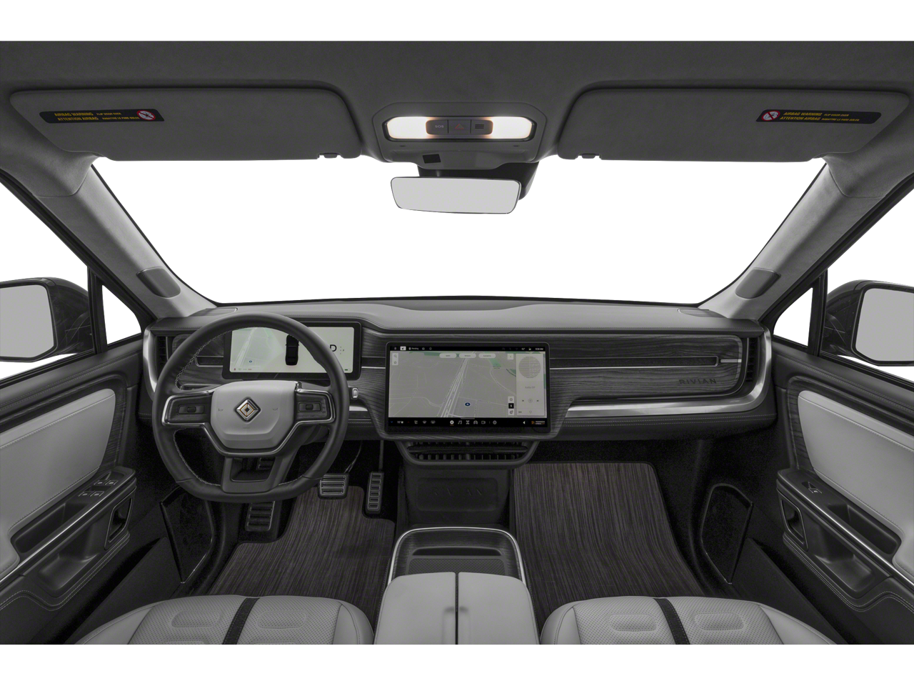 Equipped with 12 Speakers, 3rd row seats: bench, 4-Wheel Disc Brakes, 7 Seat Interior, ABS brakes, Adaptive suspension, Air Conditioning, Alloy wheels, Audio memory, Auto High-beam Headlights, Auto tilt-away steering wheel, Auto-dimming door mirrors, Auto-dimming Rear-View mirror, Auto-leveling suspension, Automatic temperature control, Brake assist, Delay-off headlights, Driver door bin, Driver vanity mirror, Dual front impact airbags, Dual front side impact airbags, Electronic Stability Control, Emergency communication system, Exterior Parking Camera Rear, Four wheel independent suspension, Front anti-roll bar, Front Bucket Seats, Front Center Armrest, Front dual zone A/C, Front fog lights, Front reading lights, Fully automatic headlights, Garage door transmitter, Heated & Ventilated Front Seats w/Memory, Heated door mirrors, Heated front seats, Heated rear seats, Heated steering wheel, Illuminated entry, Knee airbag, Low tire pressure warning, Memory seat, Navigation System, Occupant sensing airbag, Outside temperature display, Overhead airbag, Panic alarm, Passenger door bin, Passenger vanity mirror, Perforated Vegan Leather Seat Trim w/Dark Ash Wood, Power door mirrors, Power driver seat, Power passenger seat, Power steering, Power windows, Radio: Rivian Standard Audio, Rain sensing wipers, Rear air conditioning, Rear anti-roll bar, Rear audio controls, Rear dual zone A/C, Rear fog lights, Rear reading lights, Rear seat center armrest, Rear window defroster, Rear window wiper, Security system, Speed control, Speed-sensing steering, Split folding rear seat, Steering wheel memory, Steering wheel mounted audio controls, Telescoping steering wheel, Tilt steering wheel, Traction control, Trip computer, Turn signal indicator mirrors, Variably intermittent wipers, Ventilated front seats, and Wheels: 22 x 8.5 Sport Bright.
